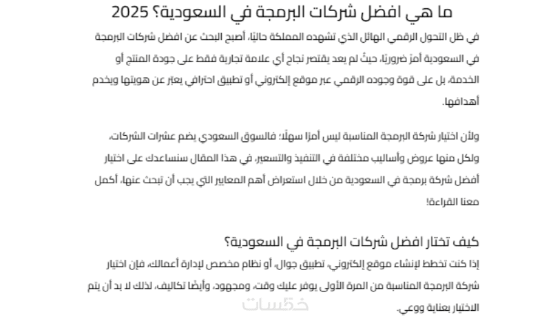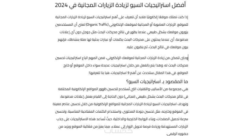 يمكنك عند طلبك الخدمة الحصول على مقالة 1000 كلمة حصرية متوافقة مع معايير تحسين محركات البحث (SEO)، بهدف مساعدتك على الظهور في نتائج البحث الأولى، وجذب زيارات حقيقية ومستهدفة لموقعك.