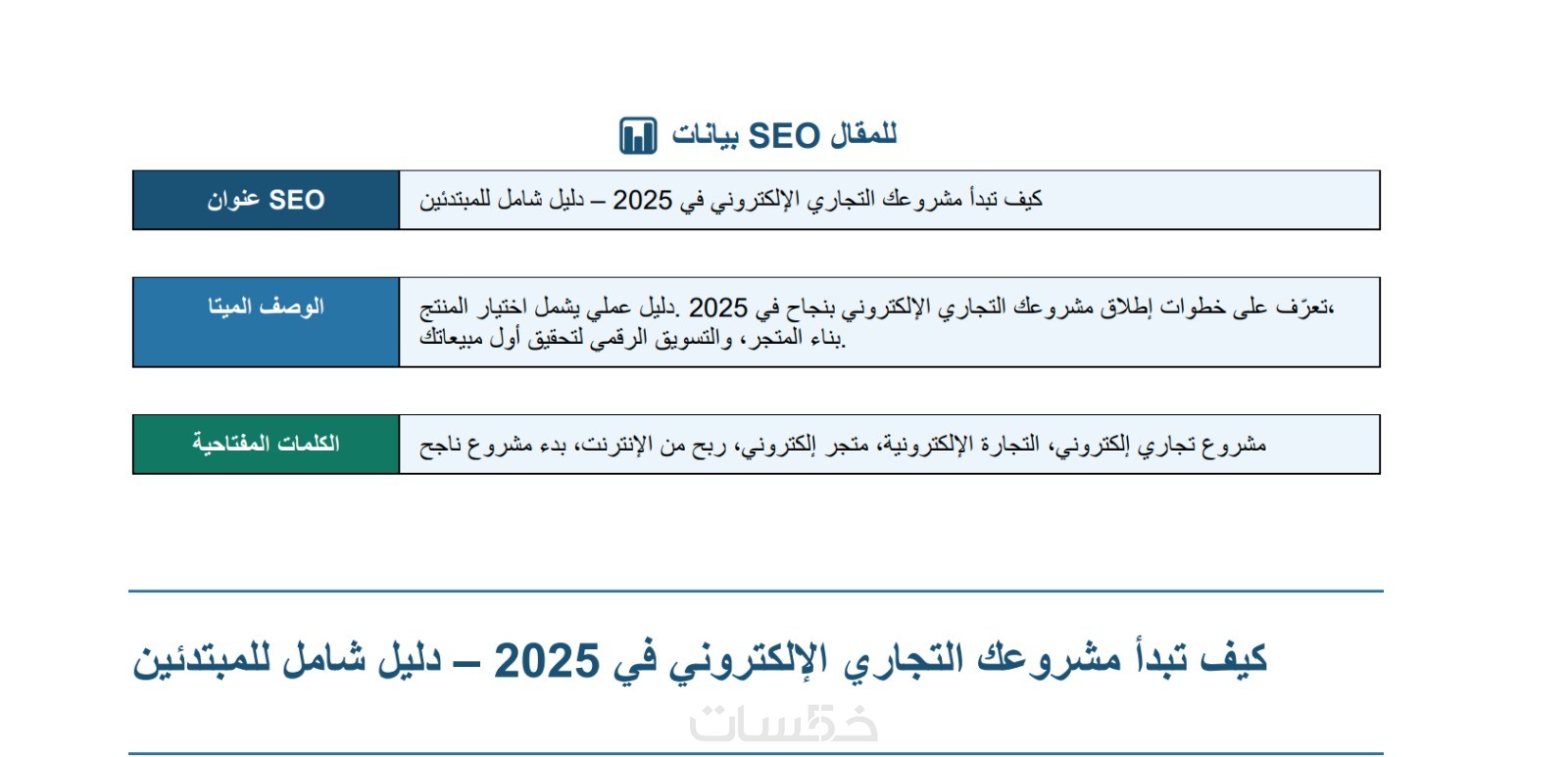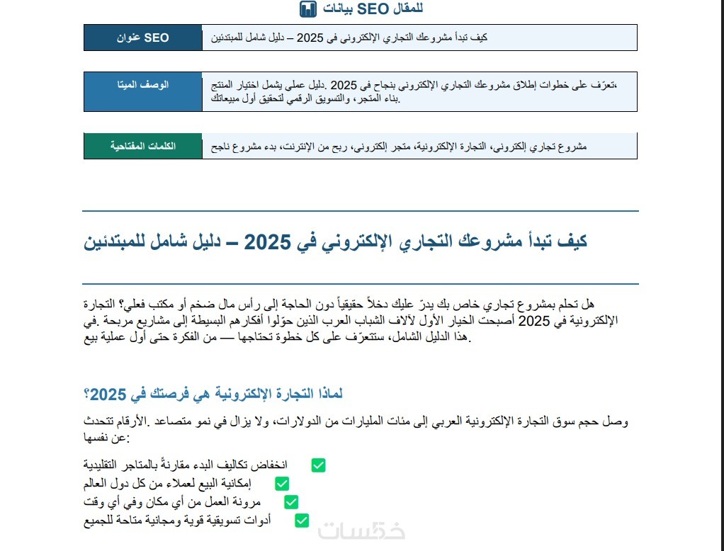 عنوان SEO ووصف ميتا جاهزان للنشر