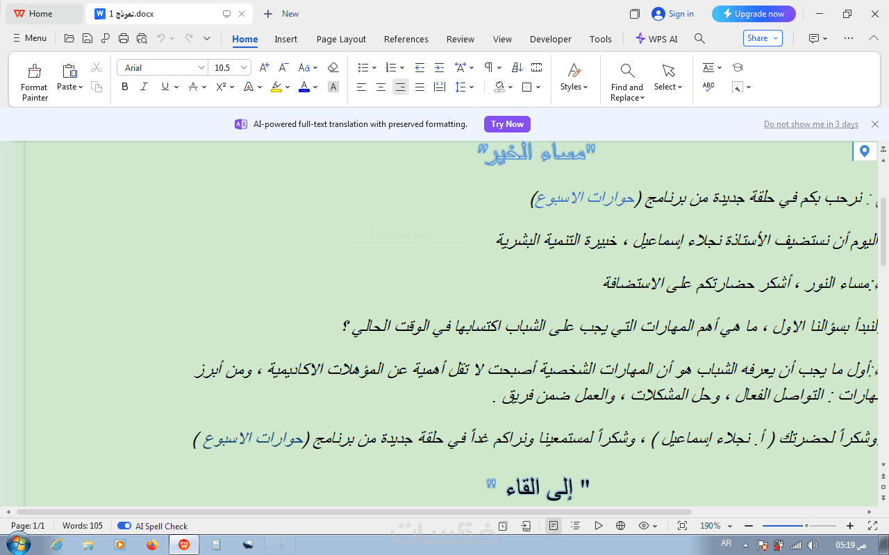"خدمة تفريغ صوت احترافي ( ملف word منسق ومنظم )