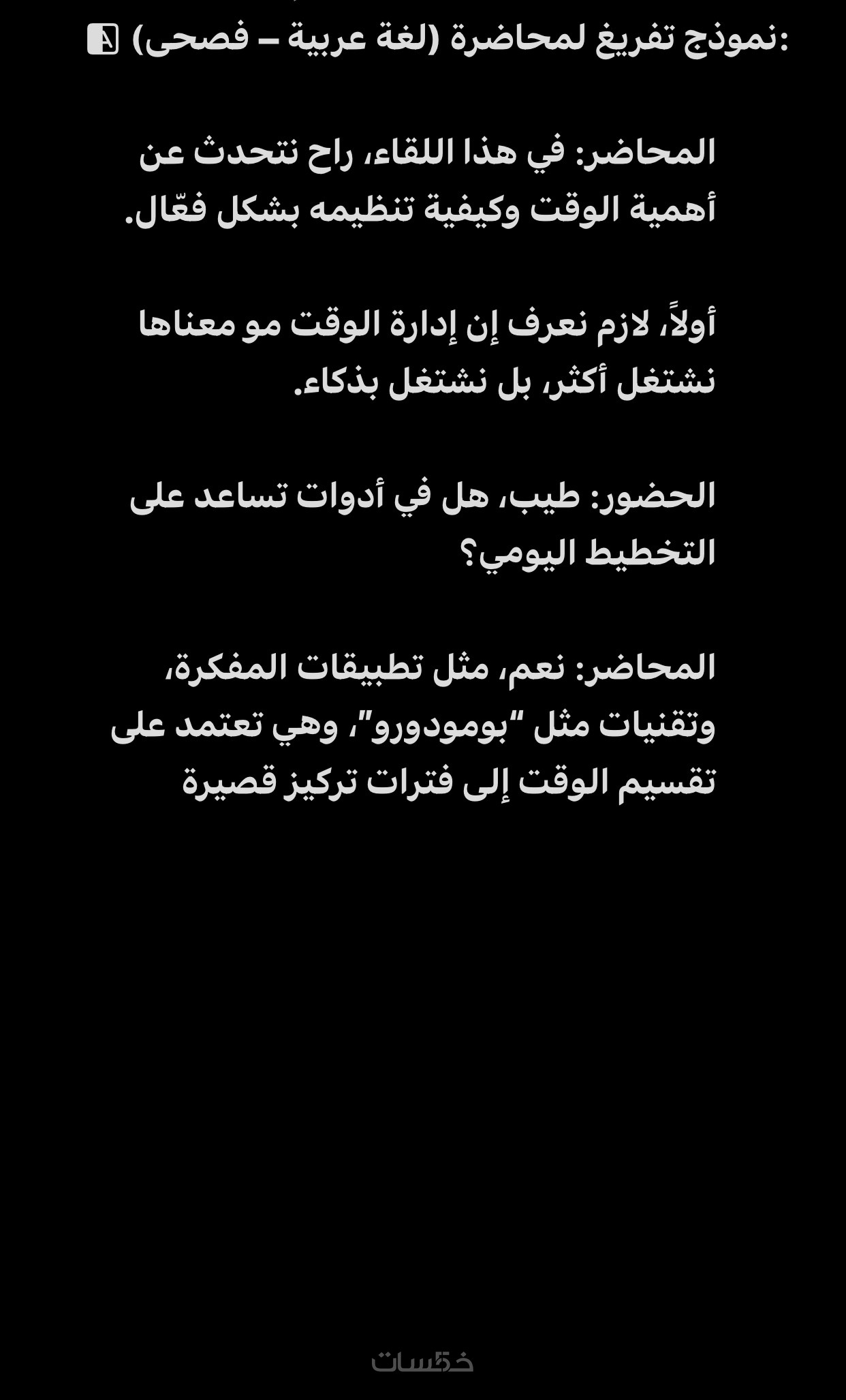 • النص يكون منسقًا بشكل واضح وسهل القراءة