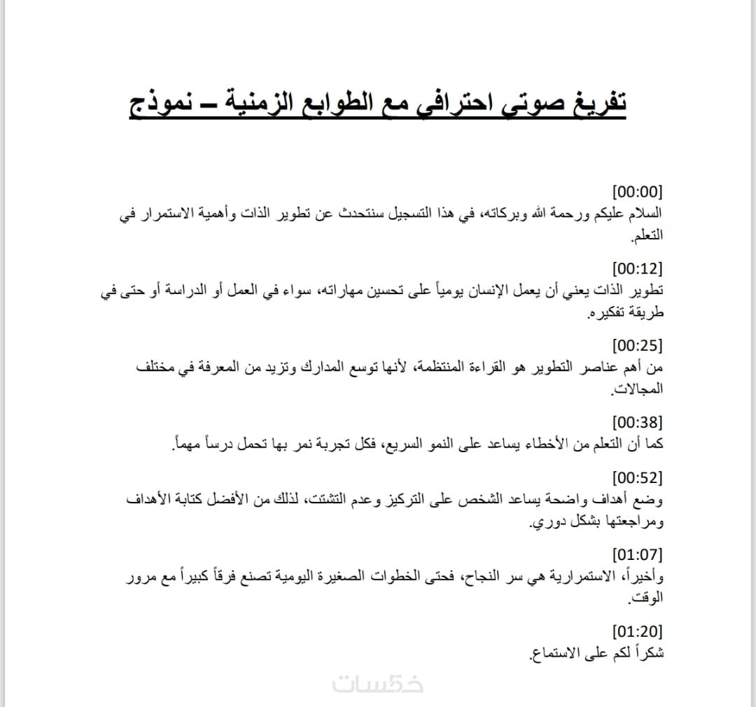 أضمن جودة عالية في التفريغ مع تنسيق احترافي يسهل القراءة والاستخدام.