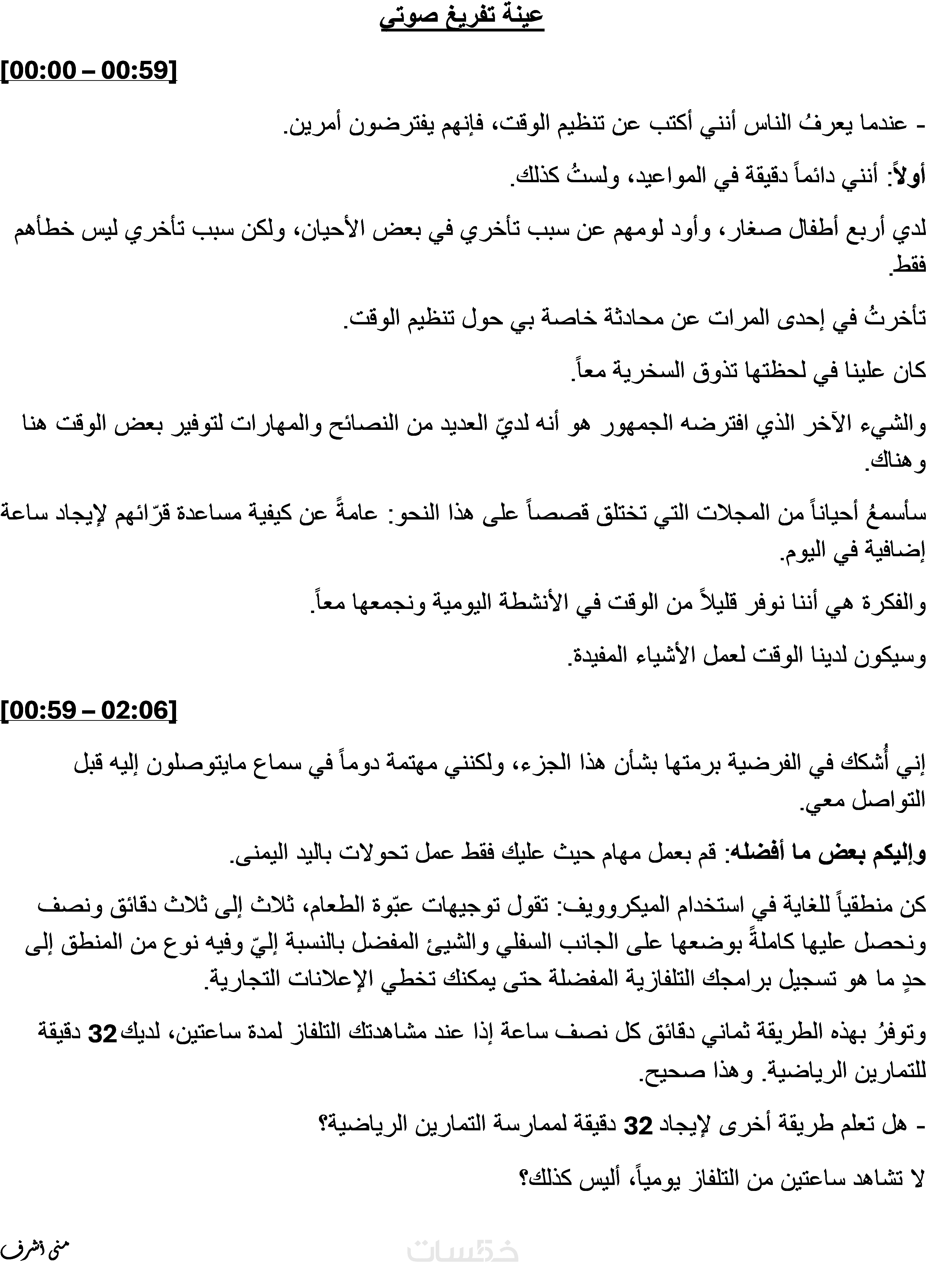 - نص خالٍ من الأخطاء الإملائية، مطابق لما ورد في التسجيل.