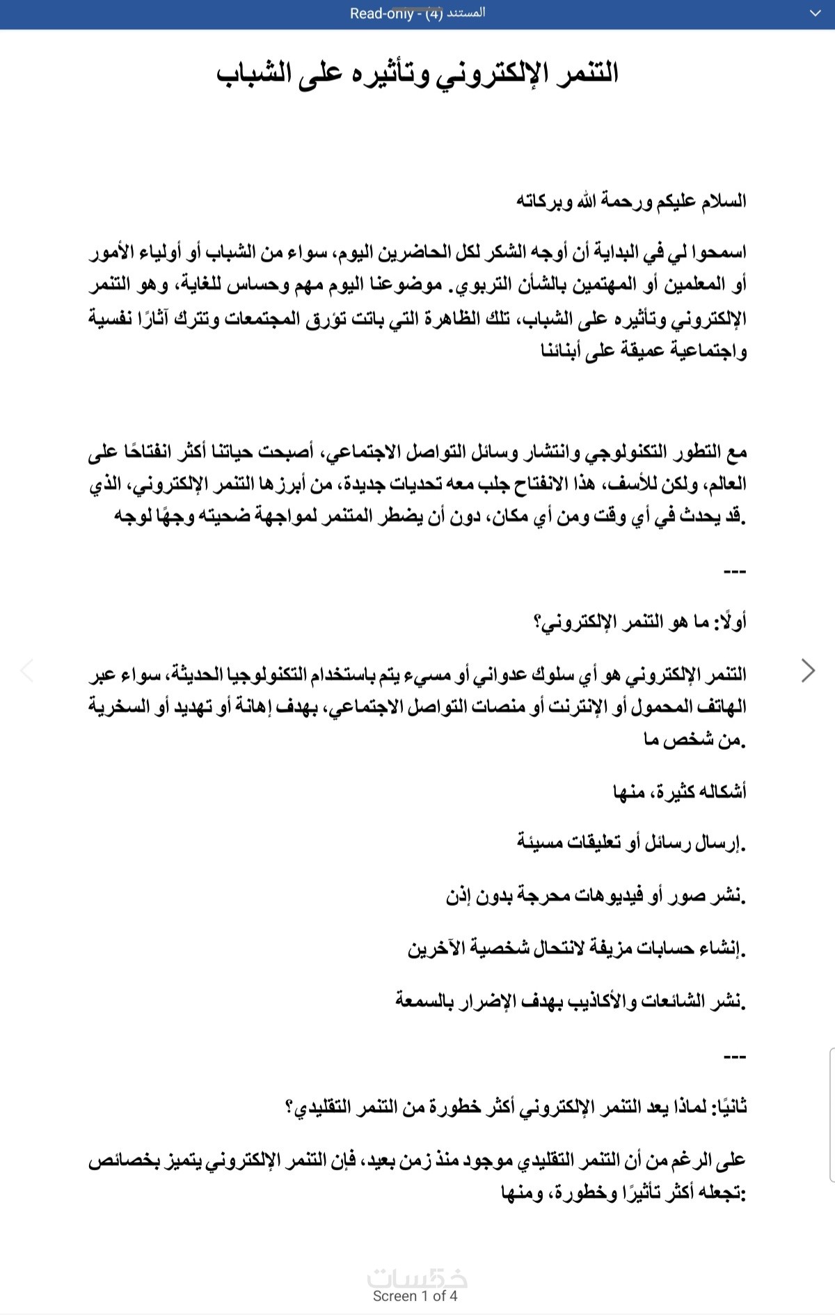 السلام عليكم ورحمة الله وبركاته