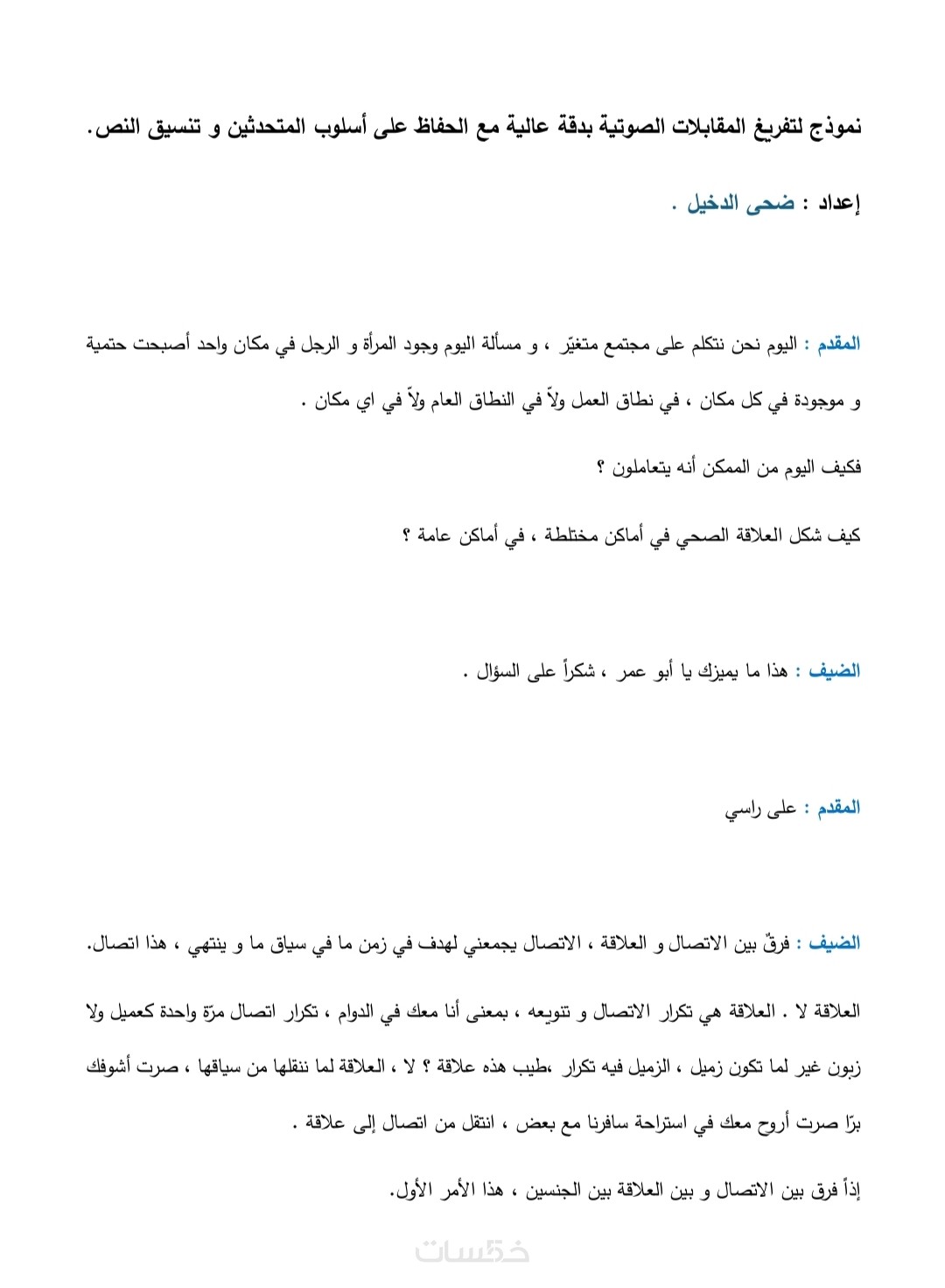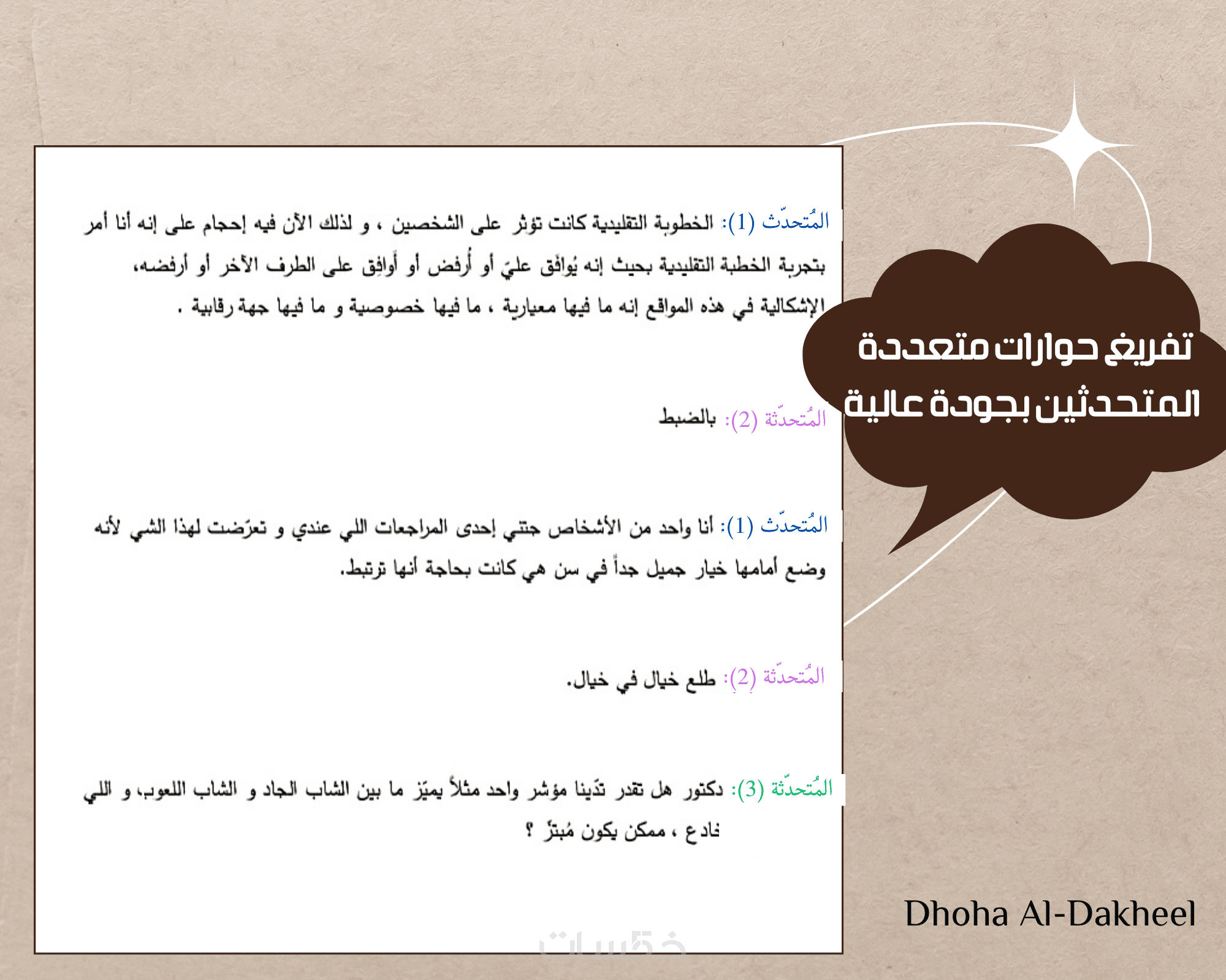 تقسيم النص حسب المتحدثين (إن وُجد) لتسهيل المتابعة.