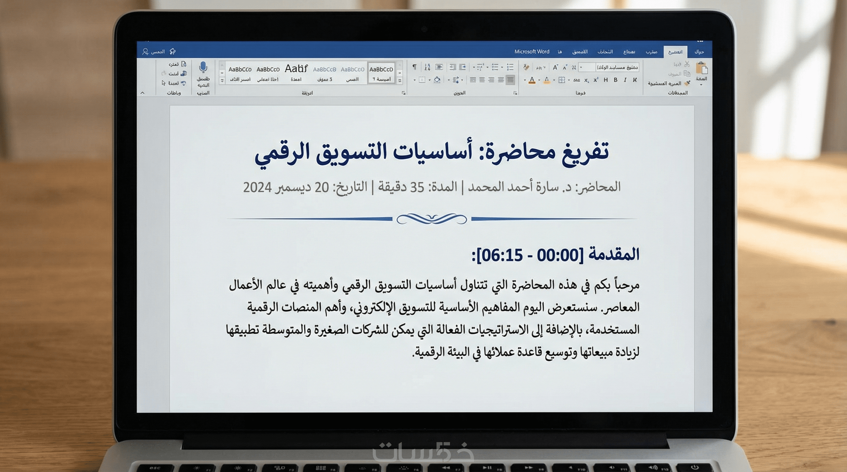 تنسيق مرتب وواضح، مع الترقيم وتوزيع الفقرات