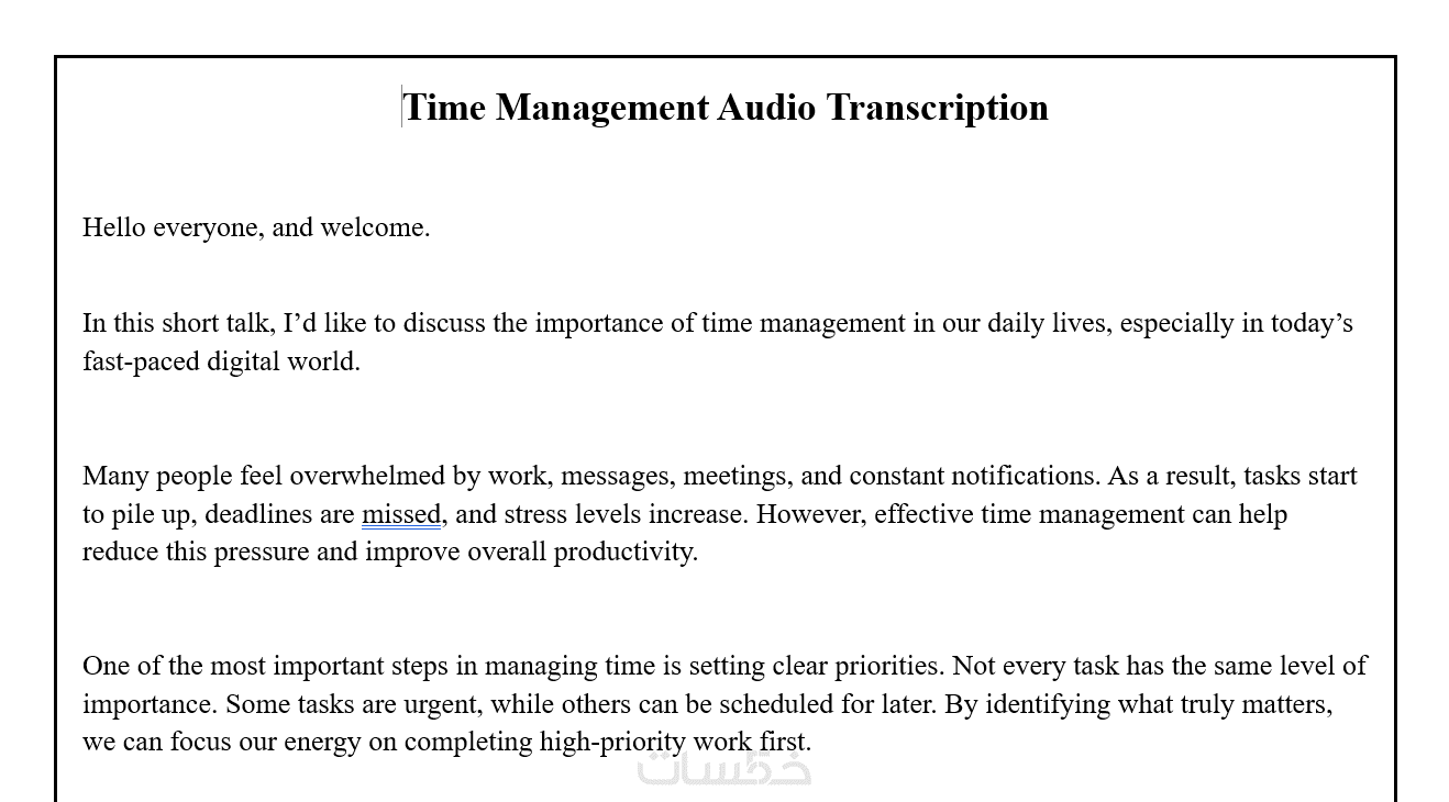 سواء كانت مقابلات، محاضرات، اجتماعات، بودكاست أو أي محتوى صوتي أو فيديو، سأقوم بتحويله إلى نص واضح ومنظم ومنسق حسب الطلب في ملف word او PDF