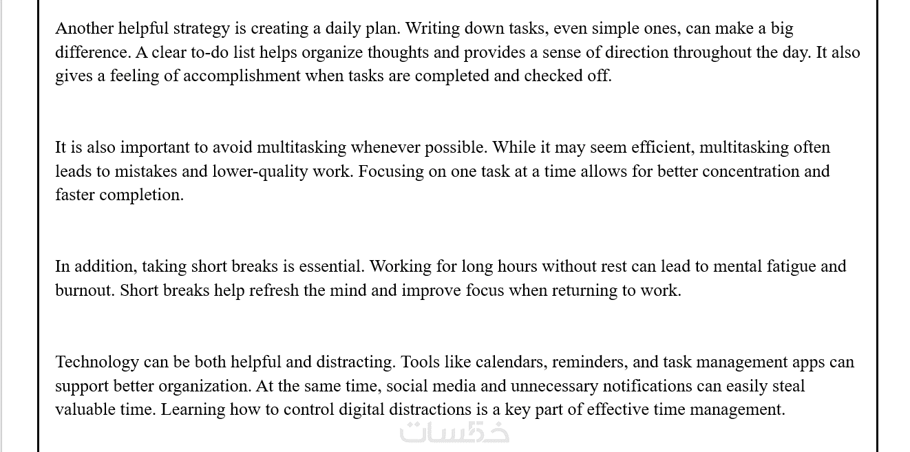 تنسيق منظم: النص يُسلم بشكل مرتب و واضح.
