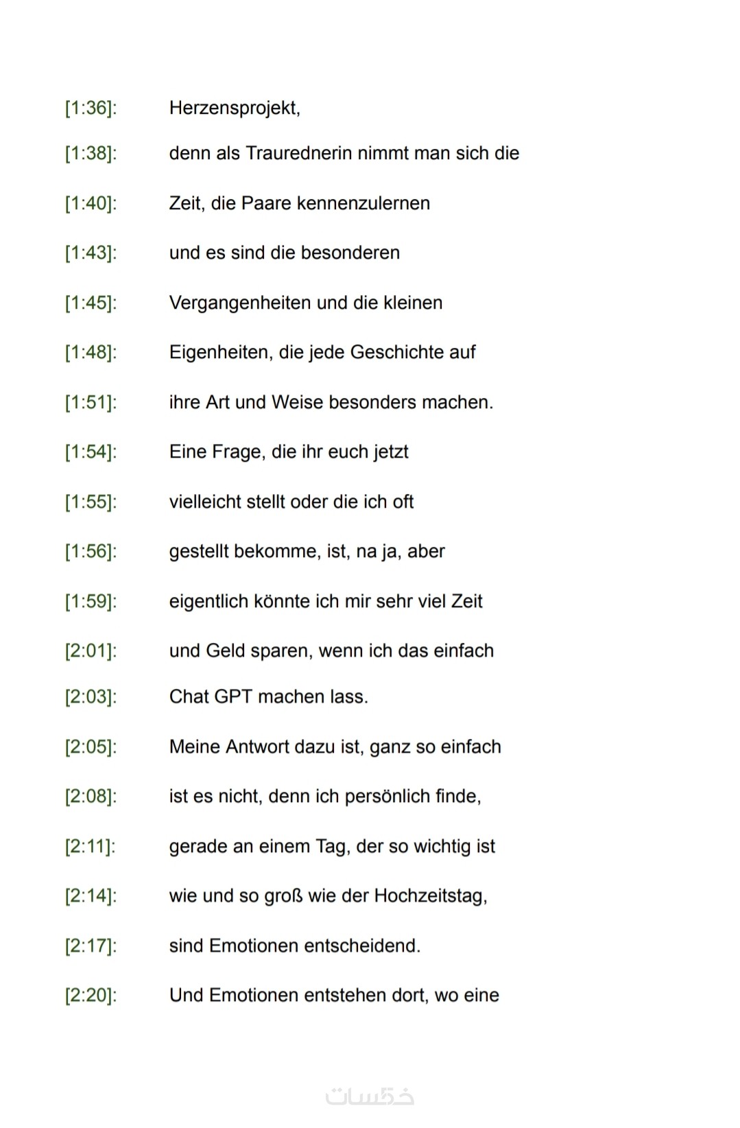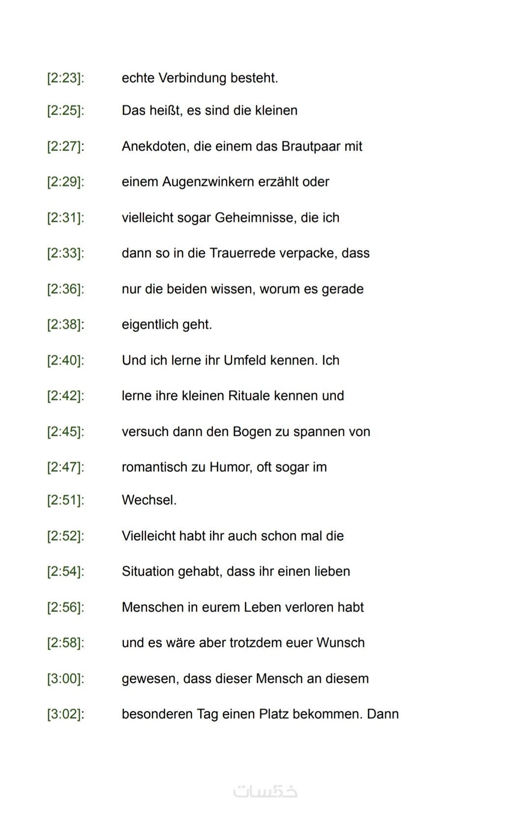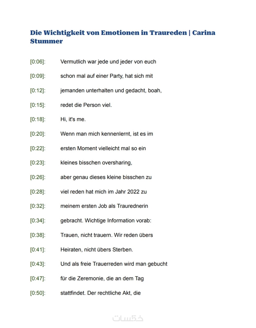 أهلاً بك. أقدم لك خدمة تفريغ النصوص الصوتية والفيديوهات باللغة الألمانية (Hochdeutsch) بدقة واحترافية.