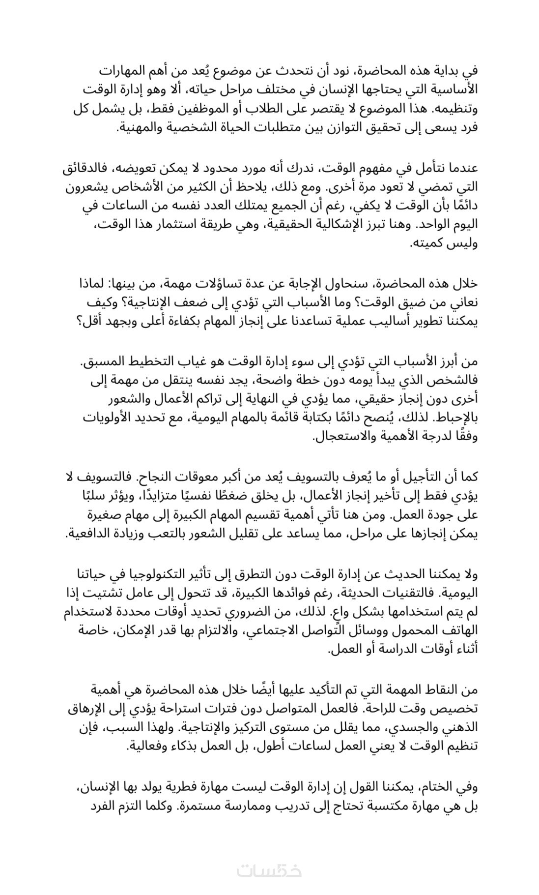 • تنظيم النص بشكل مرتب وسهل القراءة