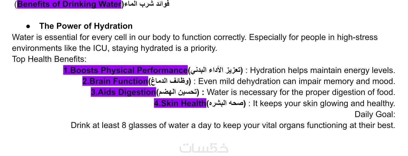 التنظيم الأكاديمي: تحويل المحاضرة إلى نص مقسم لفقرات، مع تمييز العناوين الرئيسية والفرعية.