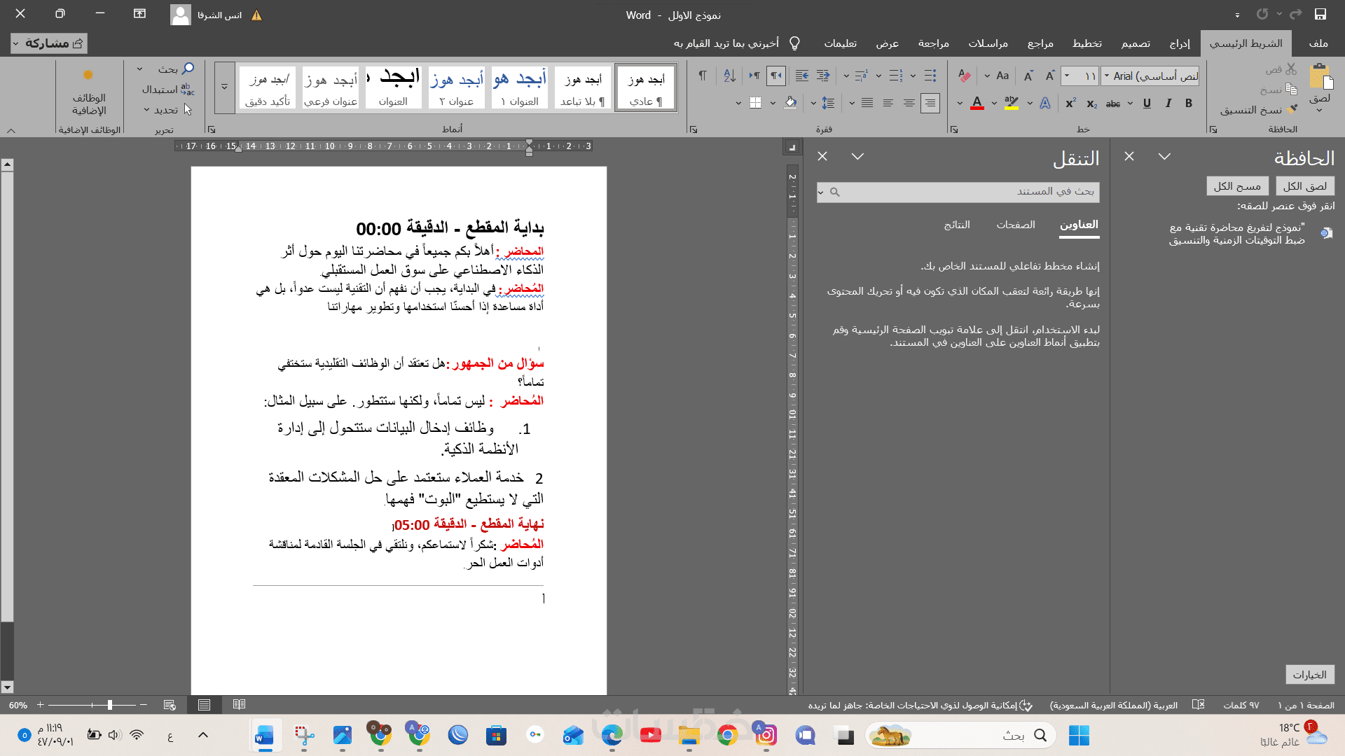 تنسيق النص على ملف Word بشكل منظم (عناوين، فقرات، علامات ترقيم).