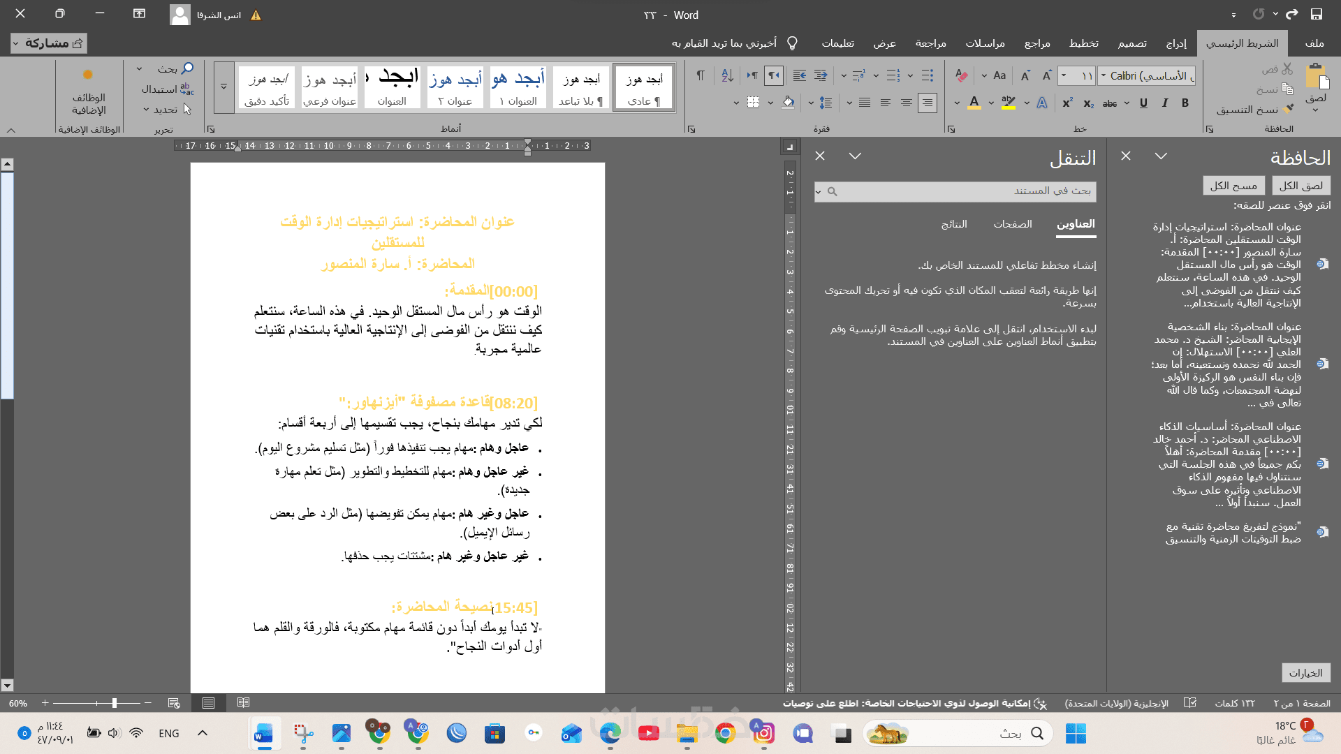 2 تنسيق احترافي: تنسيق الملف على Word بشكل يسهل قراءته (فقرات، هوامش، وعناوين).