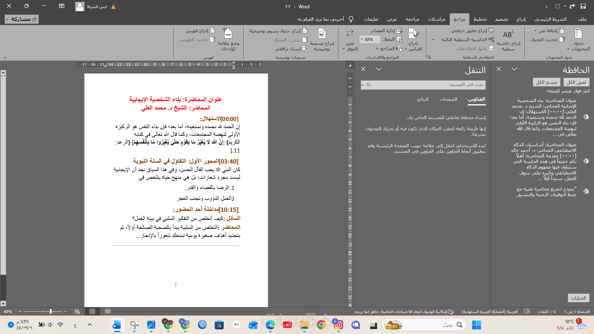 إضافة توقيتات زمنية دقيقة بجانب الفقرات الرئيسية لتسهيل الوصول إلى أي معلومة داخل المقطع الصوتي بسرعة