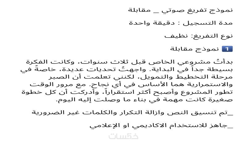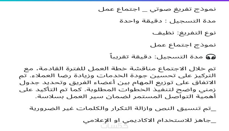 الخدمة الأساسية تشمل تفريغ حتى 10 دقائق صوت واضح