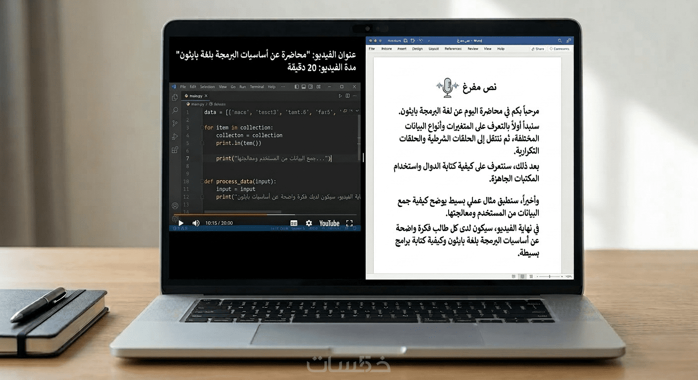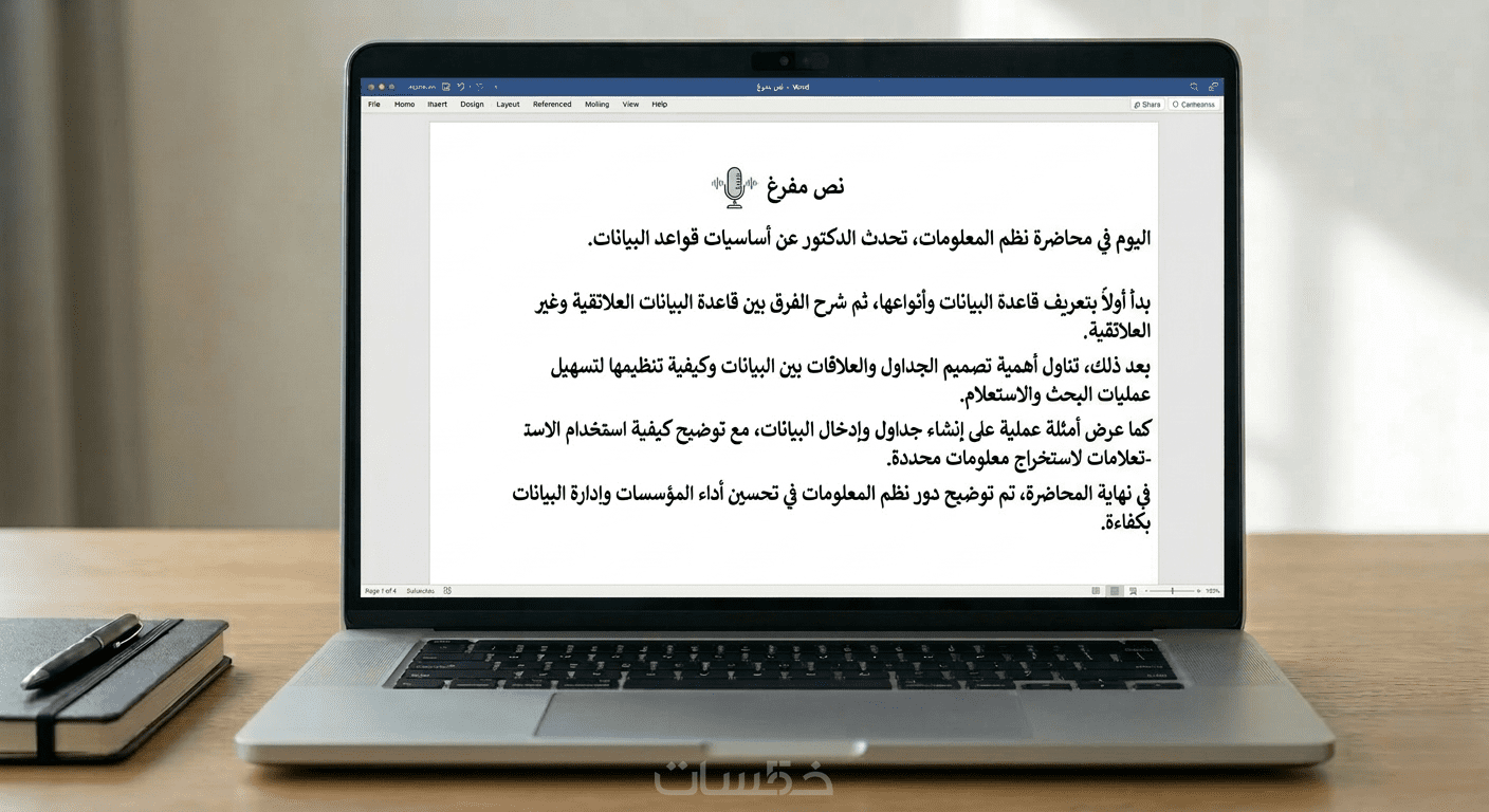 ملف يحتوي على النص الكامل بعد تفريغ الصوت أو الفيديو بشكل واضح ومنظم.