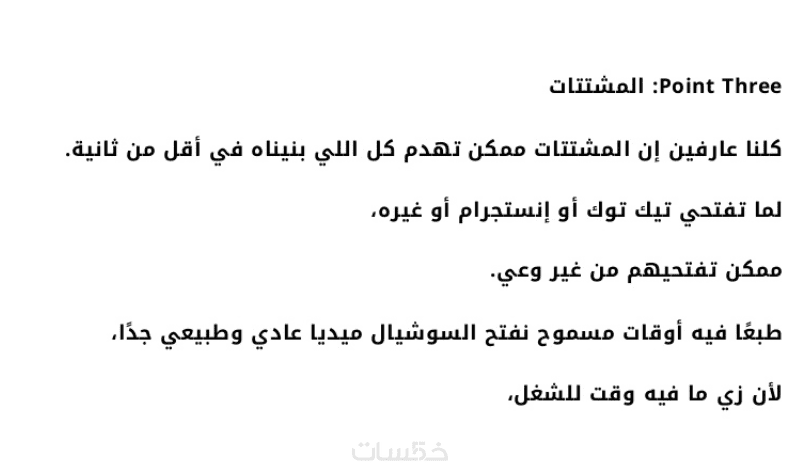 تنسيق بصري مريح: استخدام خطوط واضحة، هوامش مرتبة، وتقسيم النص إلى فقرات وعناوين فرعية.