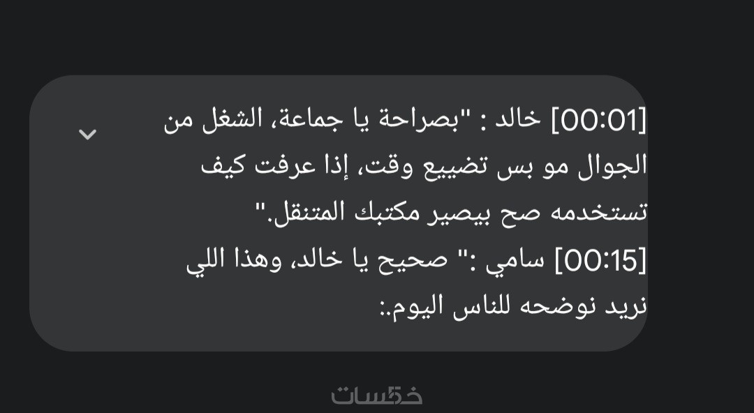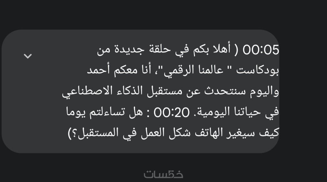 "أقدم لك خدمة التفريغ الصوتي الاحترافي للملفات الصوتية ومقاطع الفيديو والبودكاست باللغة العربية، مع التزام تام بالدقة اللغوية والتنسيق المنظم.