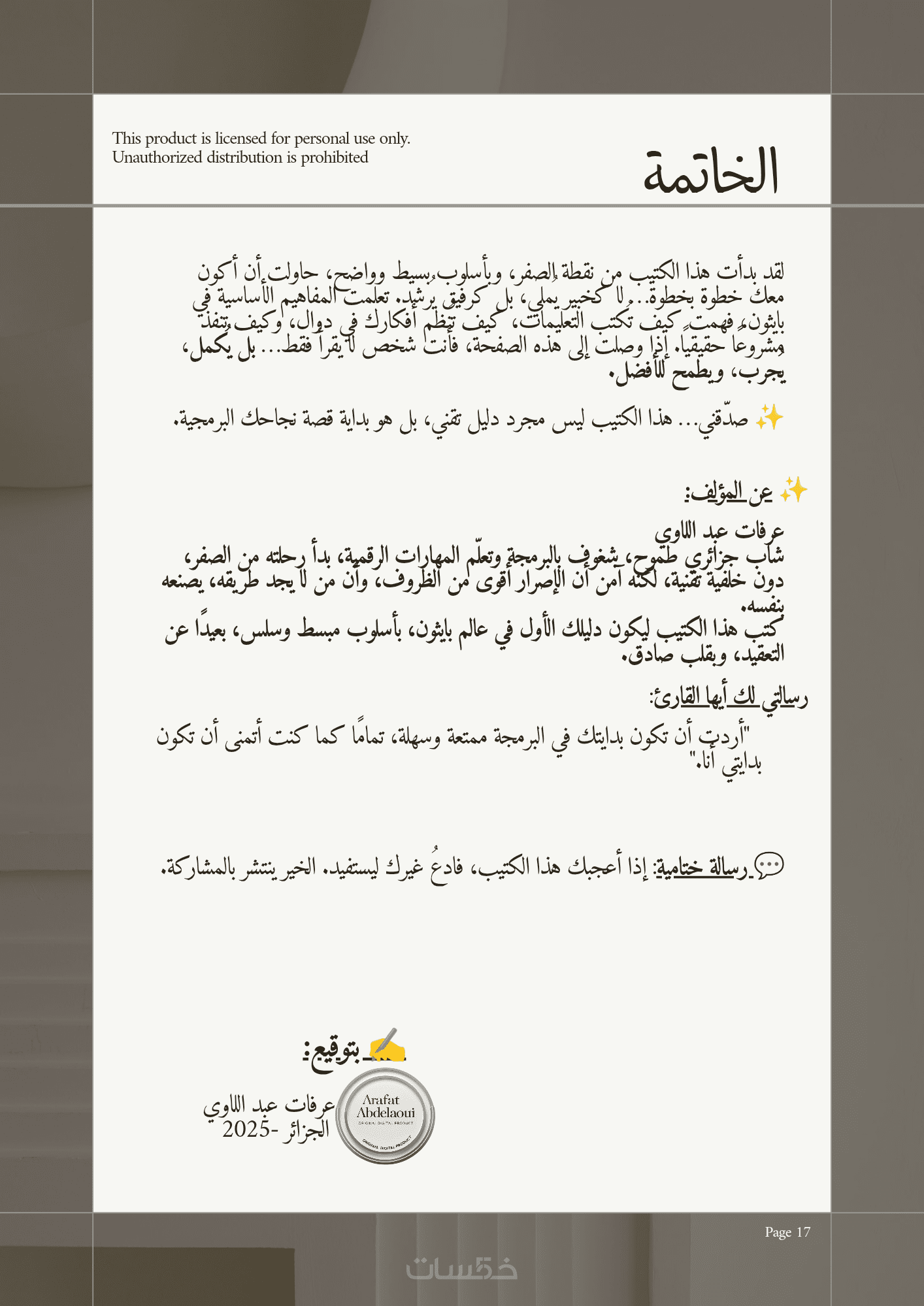 إضافة صفحة عن المؤلف + توقيع شخصي داخل الكتيب.