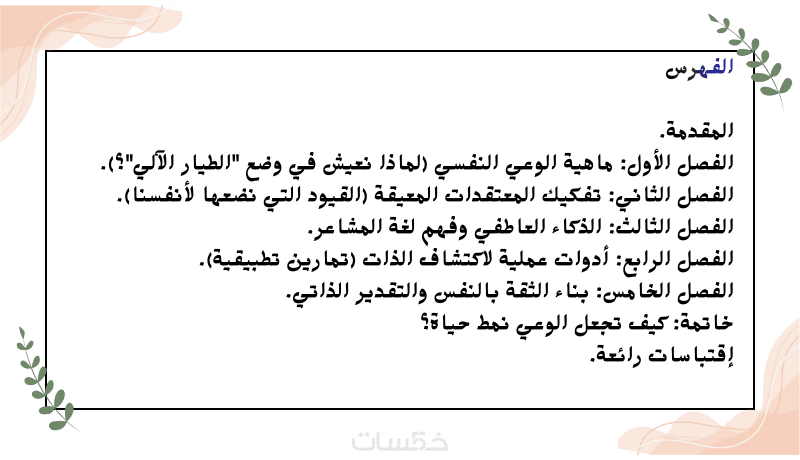 الكتاب مناسب لأي شخص حابب يفهم نفسه أكتر، يطوّر وعيه بذاته، ويتعامل مع مشاعره وأفكاره بطريقة أبسط وأوضح.