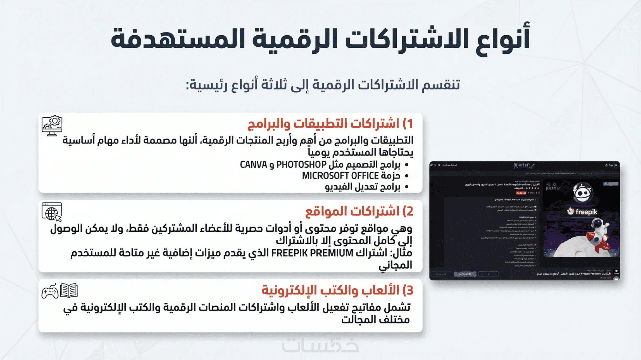 هناك من يحقق دخلًا شهريًا يصل إلى 20,000 ريال من بيع الاشتراكات والمنتجات الرقمية، وهو في منزله وبدون رأس مال حقيقي. هذا الكتاب يكشف لك الطريقة خطوة بخطوة: كيف تحصل على المنتجات بأسعار الجملة، كيف تنشئ متجرك الرقمي، وكيف تبيع بذكاء وتحقق هامش ربح مرتفع. لا شحن، لا تخزين، لا تعقيد. ساعة إلى ساعتين يوميًا قد تغيّر مستقبلك المالي. ابدأ الآن قبل أن تمتلئ السوق أكثر.