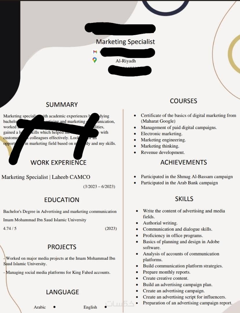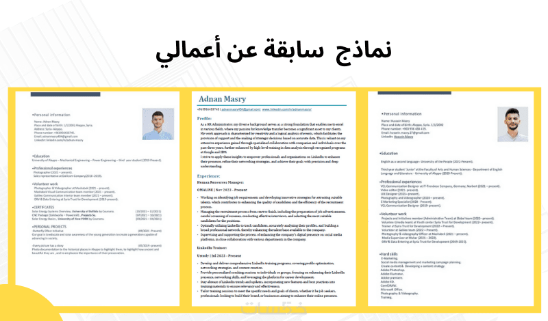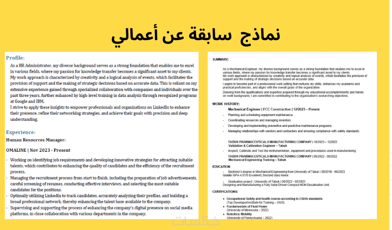 عمل سيرة ذاتية باللغة العربية والانجليزية