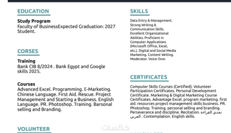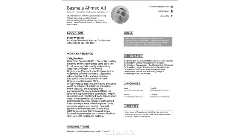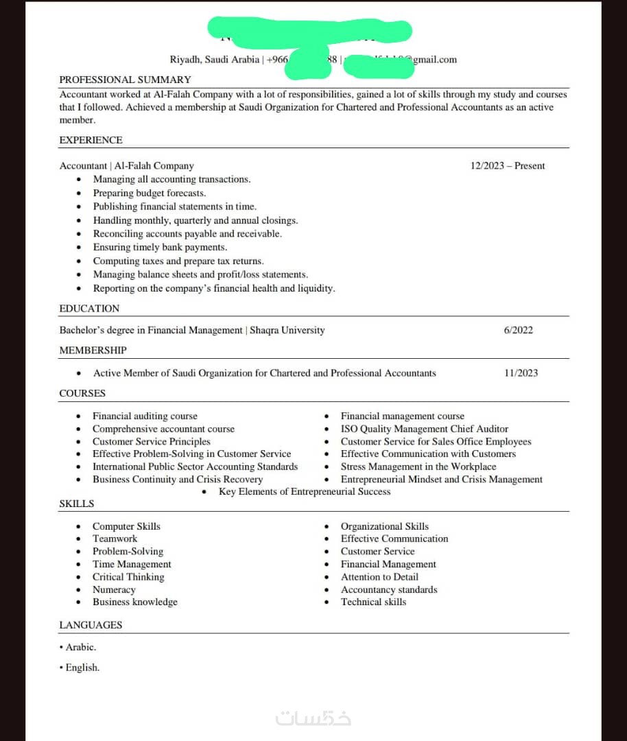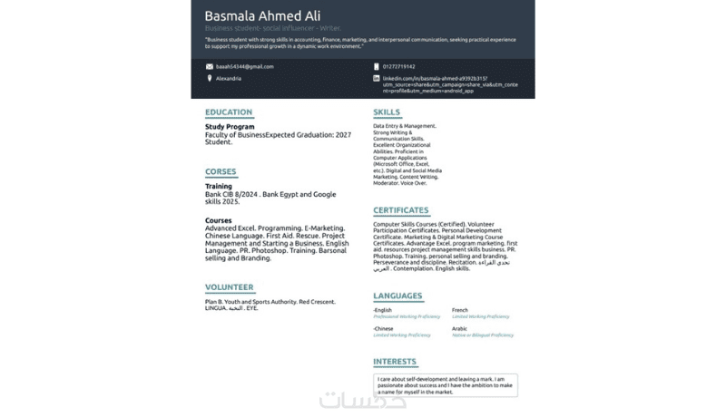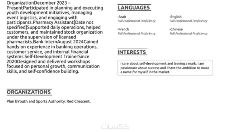 كتابة سيرة ذاتية رسمية باللغتان العربية والانجليزية