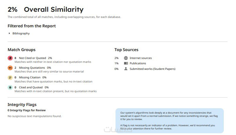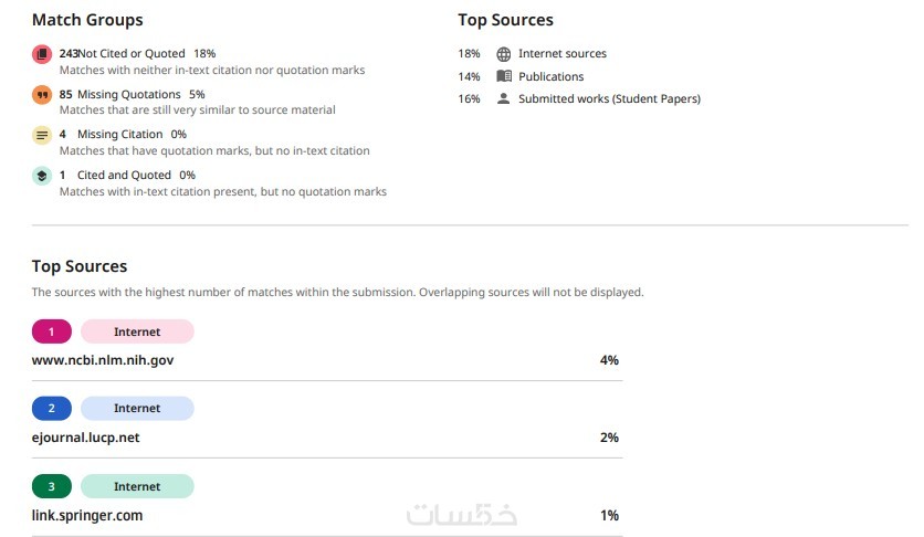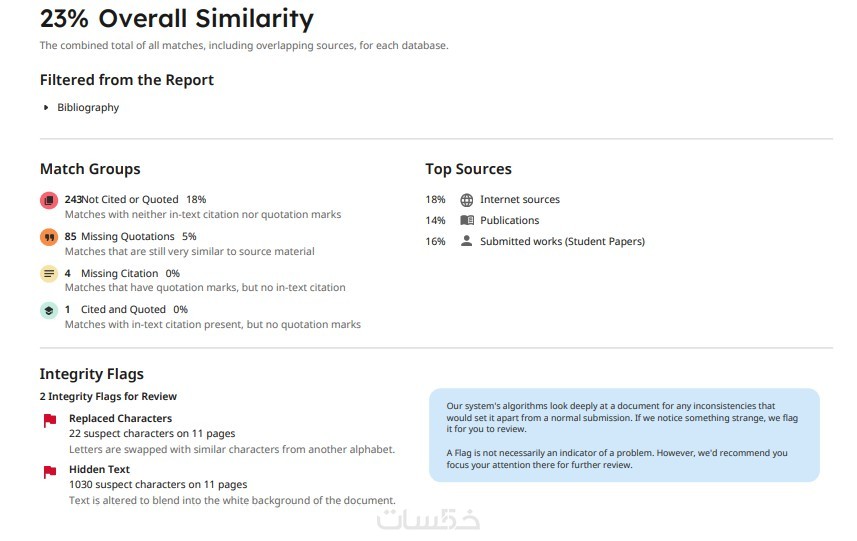 تحليل دقيق لنسبة الاقتباس مع تقرير مفصل