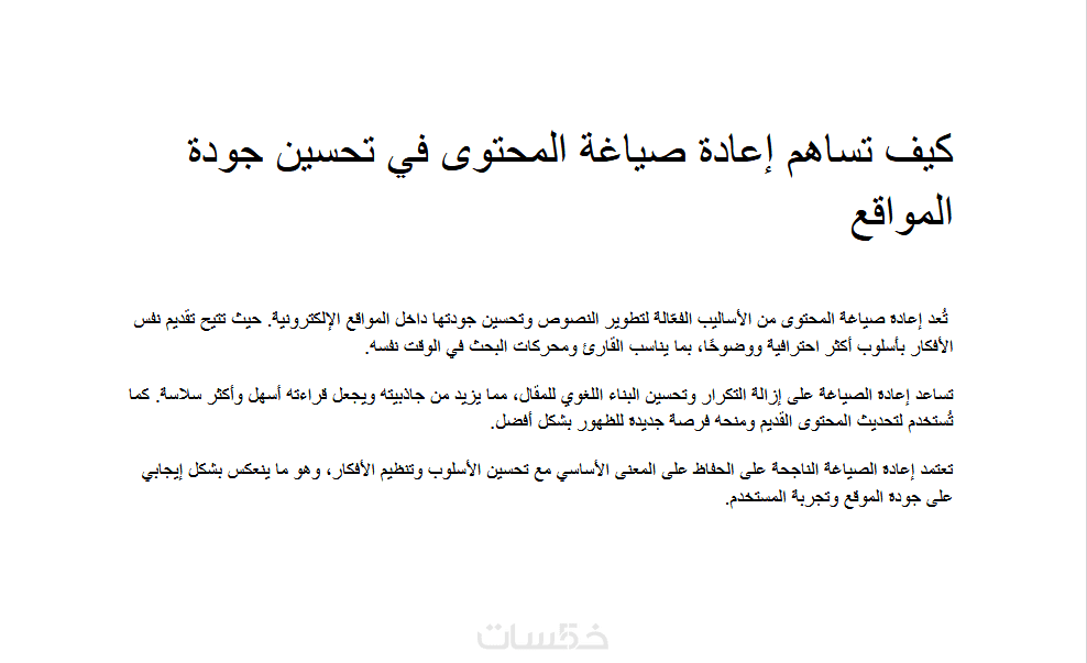 إعادة الصياغة دون تغيير الفكرة الأساسية للمحتوى.