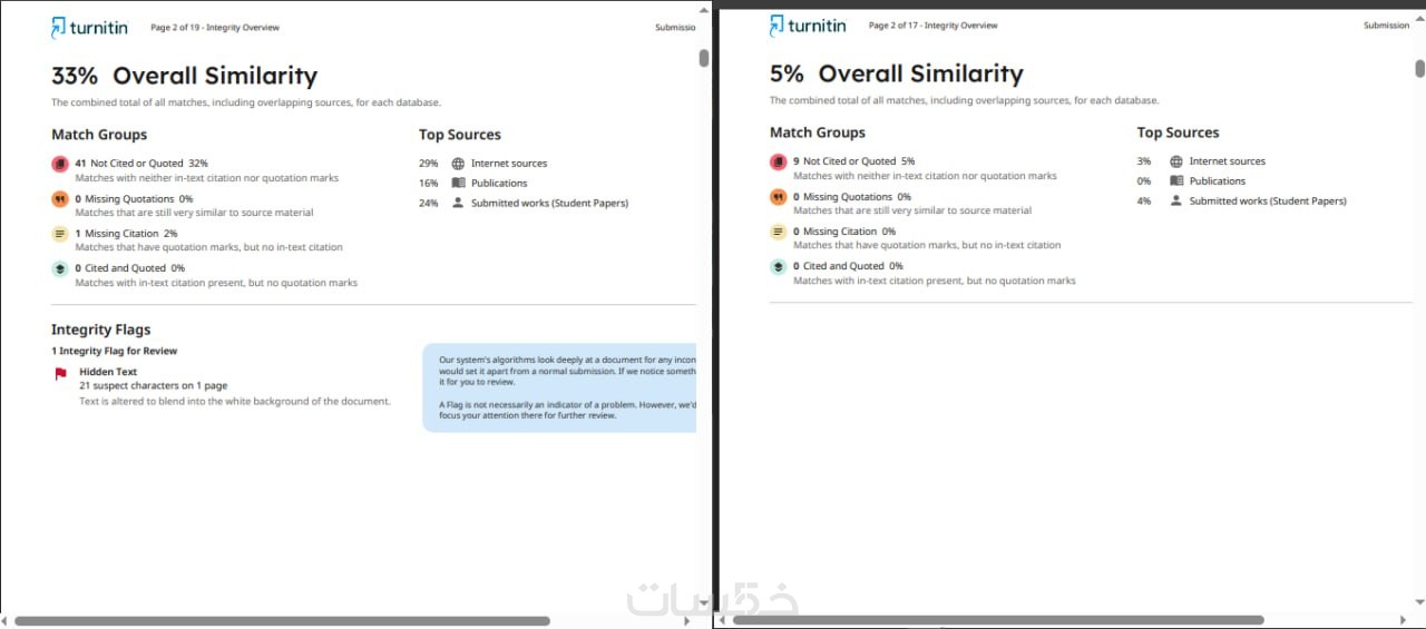 تقليل نسبة الاقتباس لتتوافق مع متطلبات الفحص المختلفة