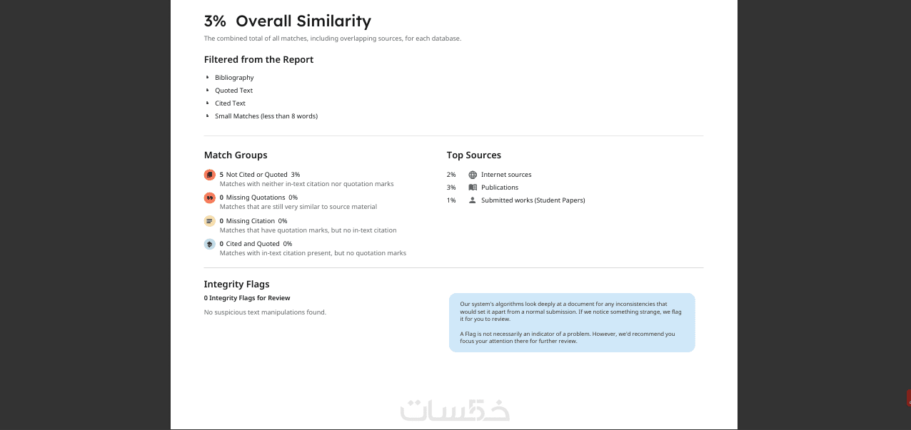 أقوم بإعادة كتابة النص بطريقة بشرية 100%، مما يساعد على اجتياز برامج الفحص المختلفة بسهولة، مع تحسين جودة الصياغة واللغة لتكون مناسبة للمعايير الأكاديمية.