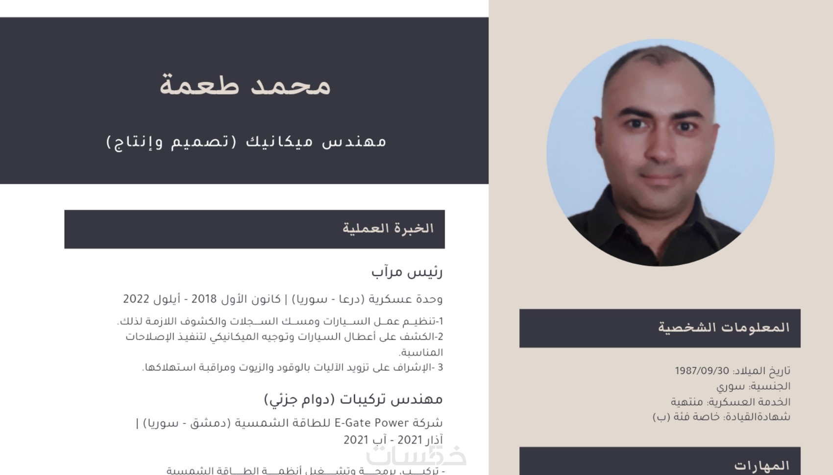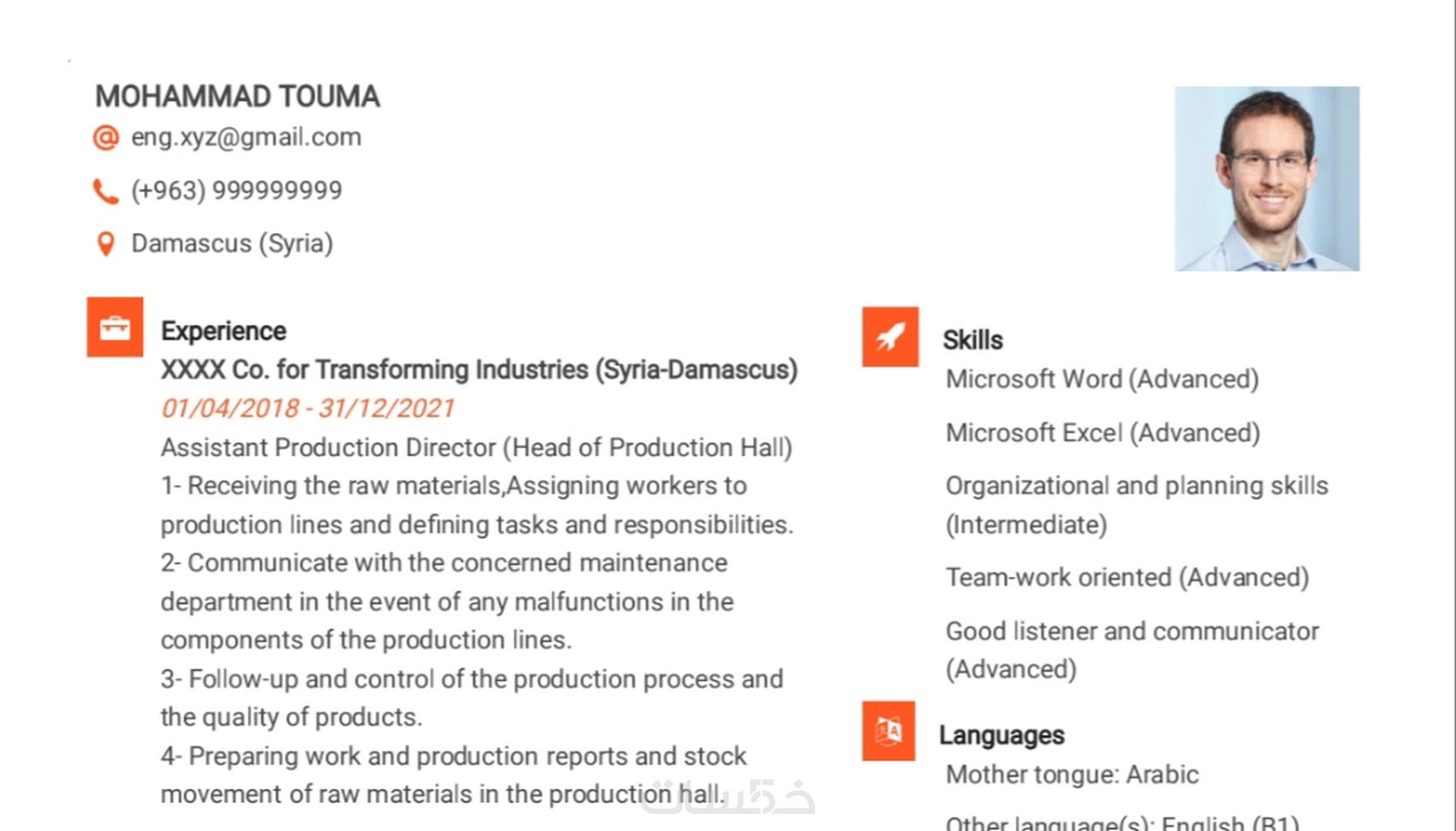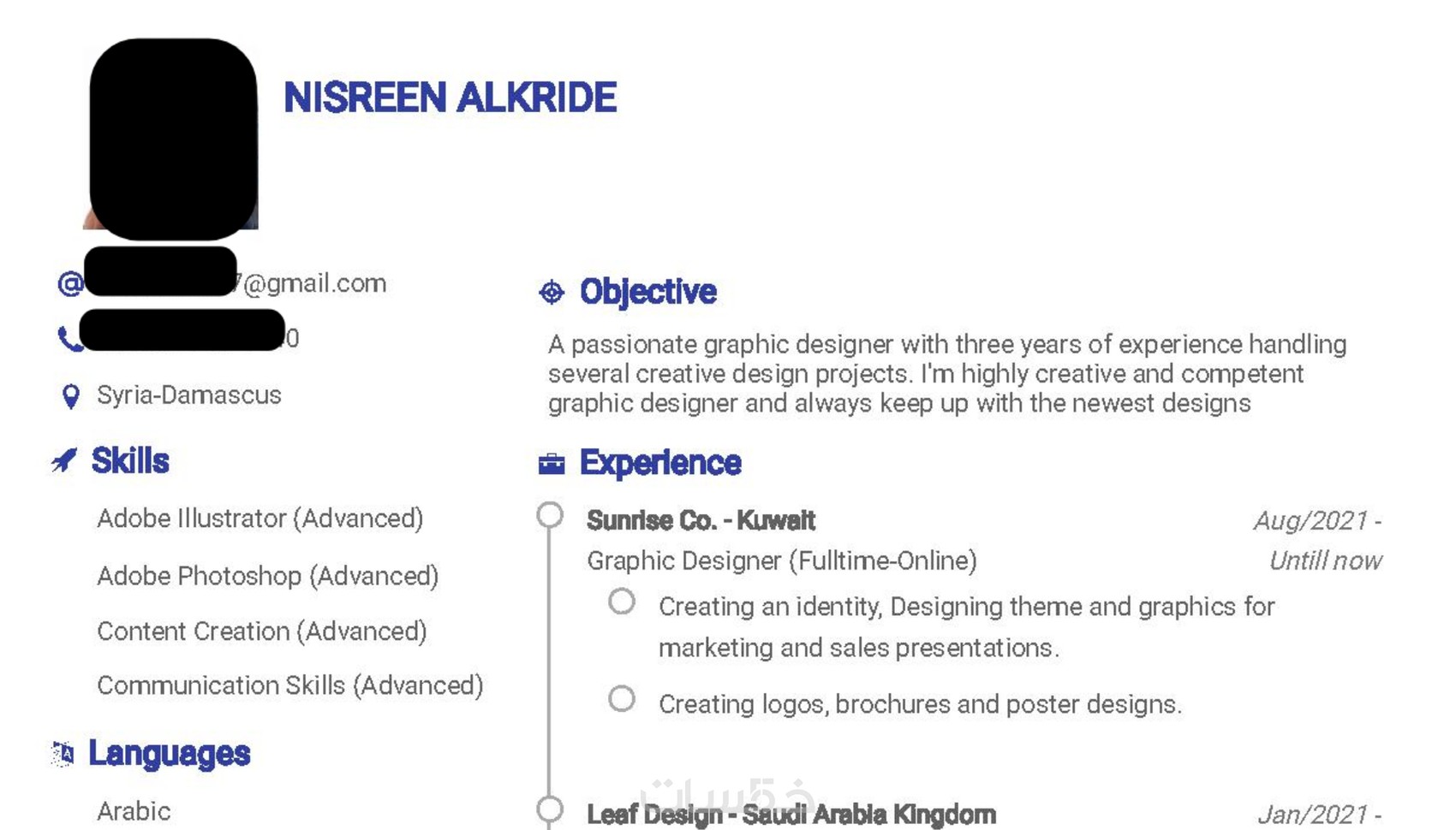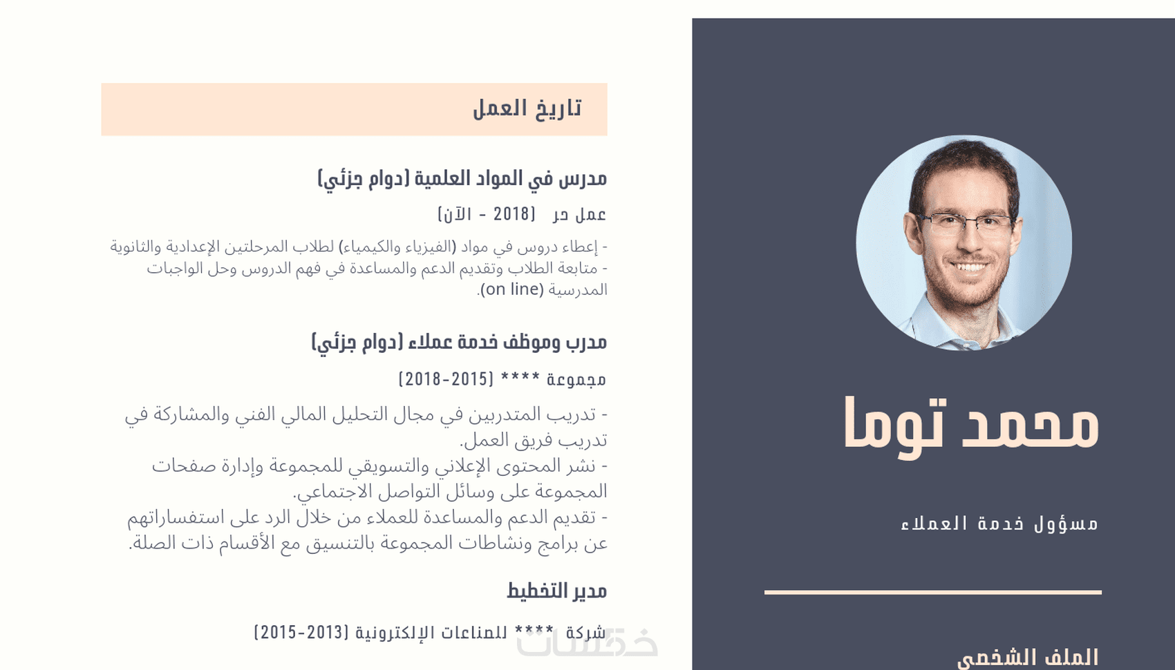 - إعداد سيرة ذاتية باللغة العربية (صفحة واحدة)