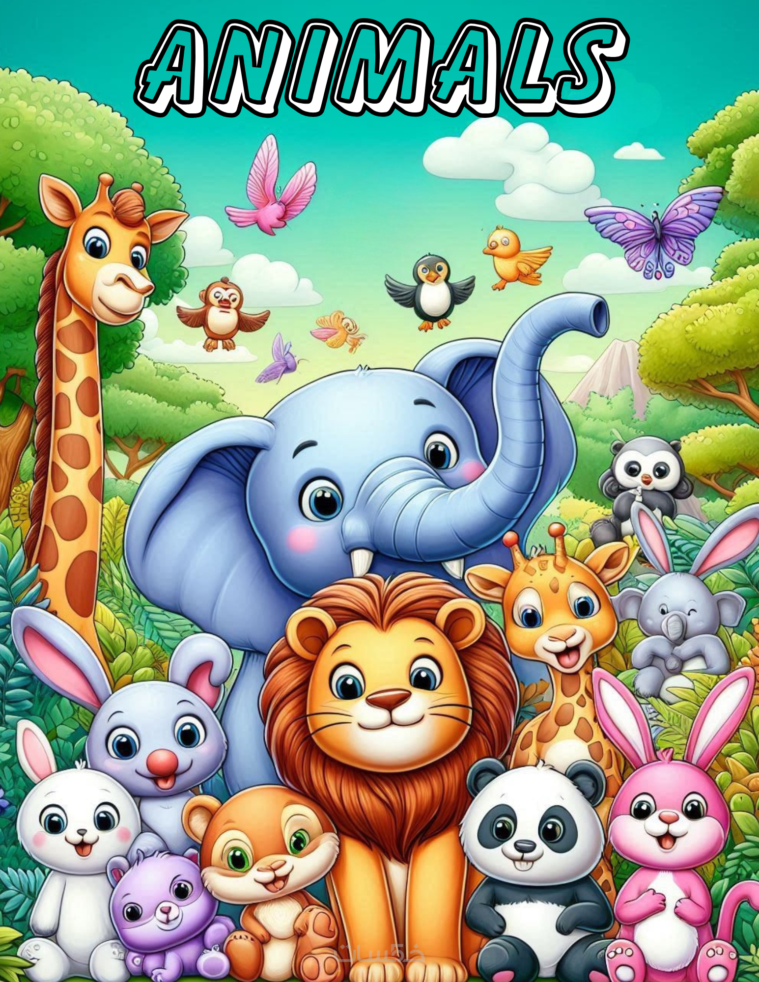 يحتوي على رسومات حيوانات كيوت بخطوط سميكة وواضحة تساعد الطفل على التلوين بسهولة.