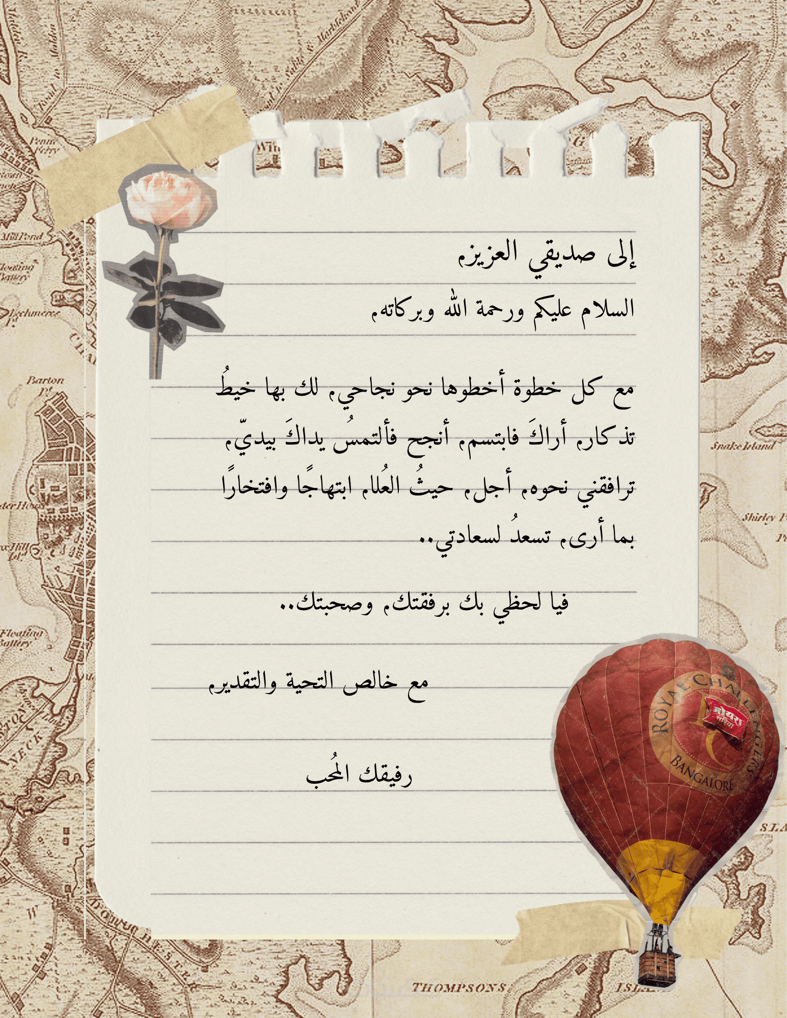 تختزل المشاعر لك، برسالة واحدة، لا تتجاوز الصفحة، مكونة من عدة أسطر.