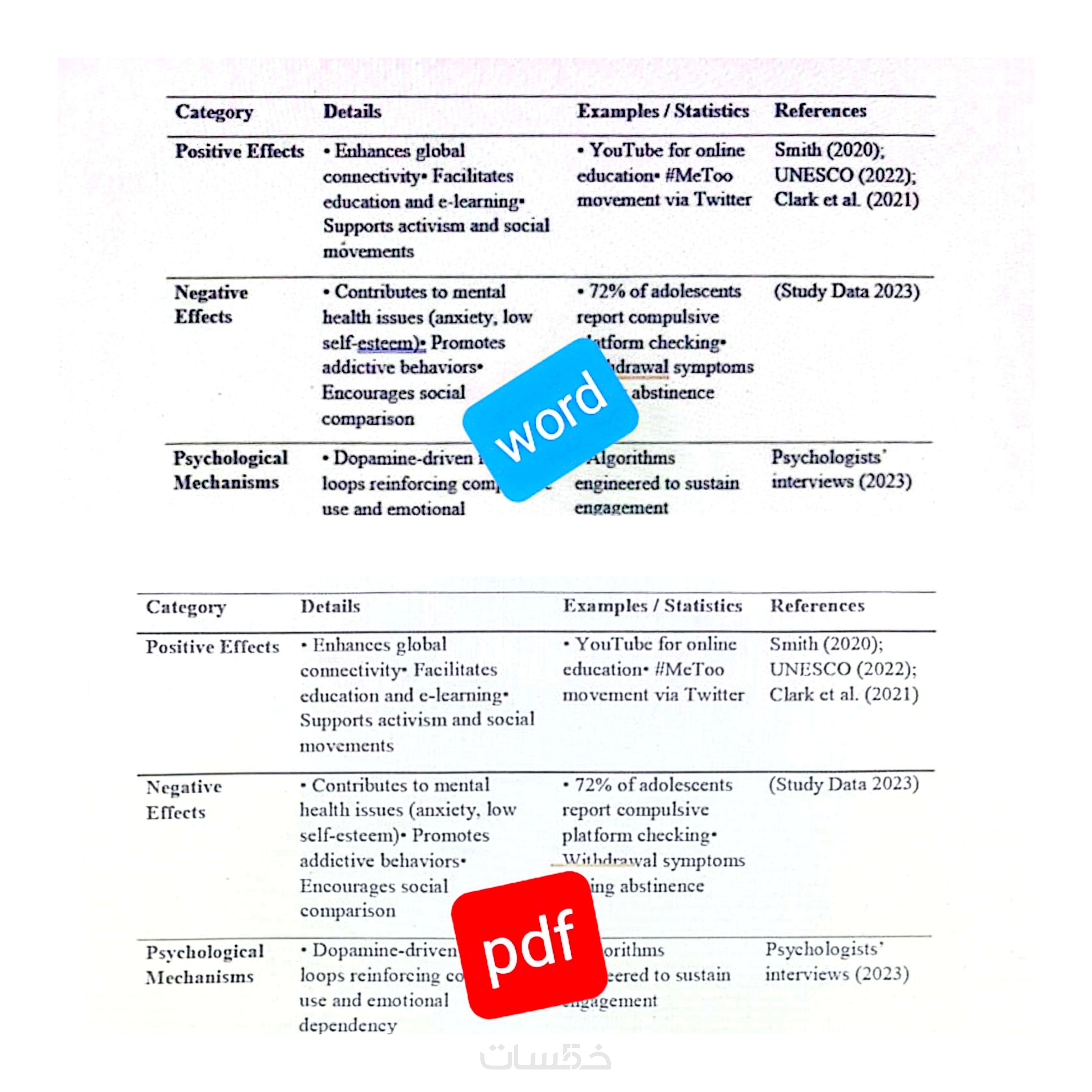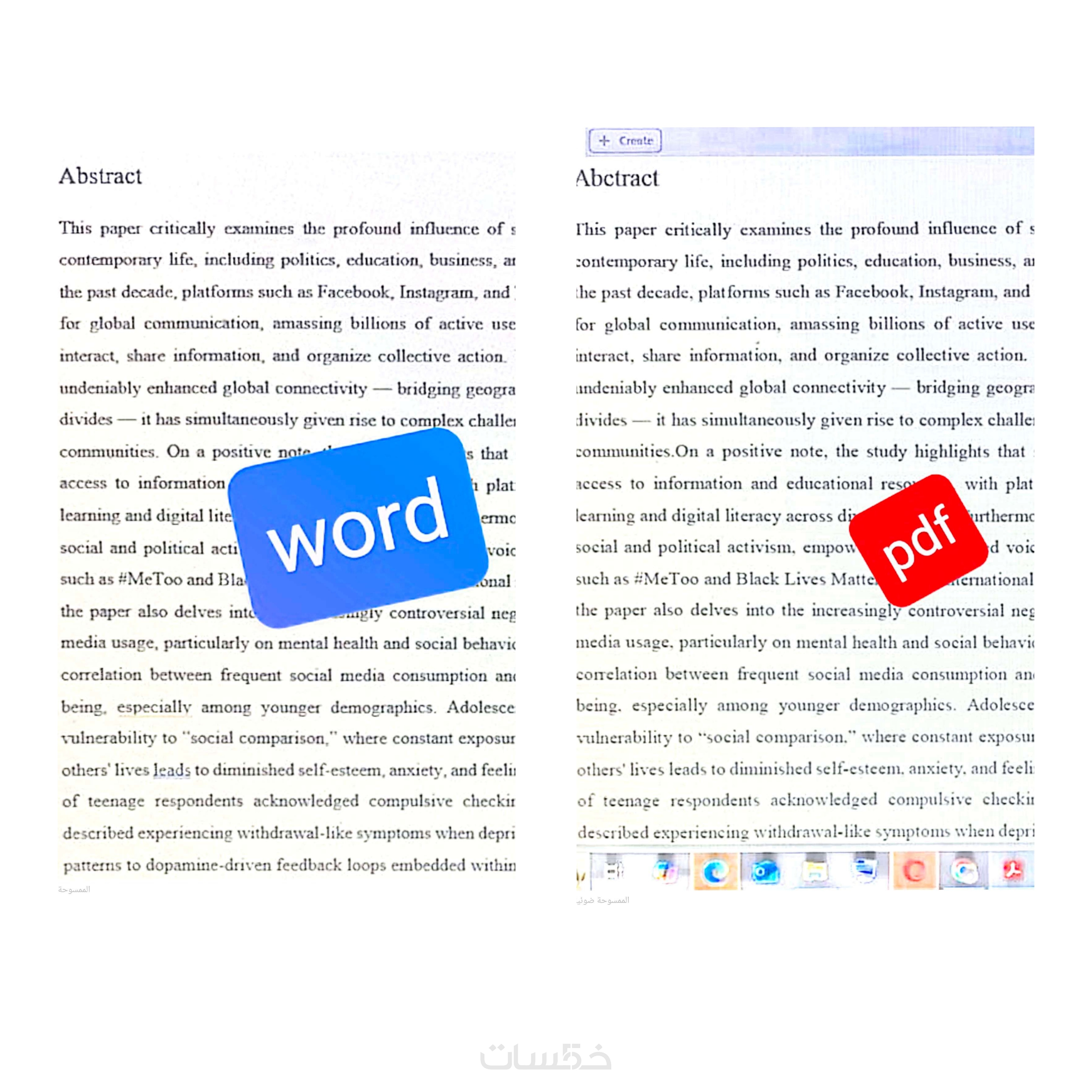 أقدم لك خدمة تنسيق ملفات Word وتنسيق الأبحاث وفقًا لدليل الجامعة أو المعايير المحددة، مع ضمان الدقة والجودة.