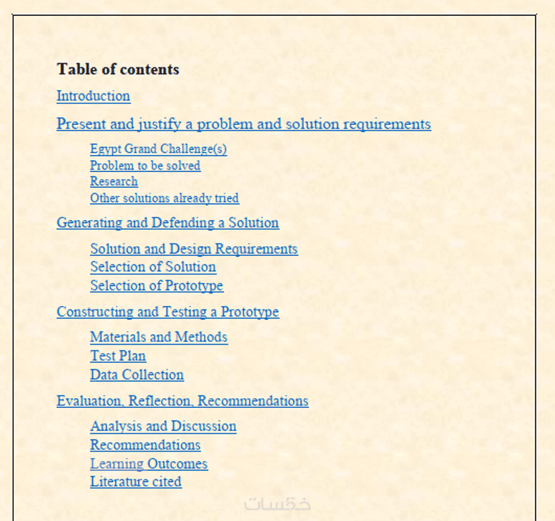 • إنشاء فهرس تلقائي Table of Contents (لا تحتسب من عدد الصفحات).