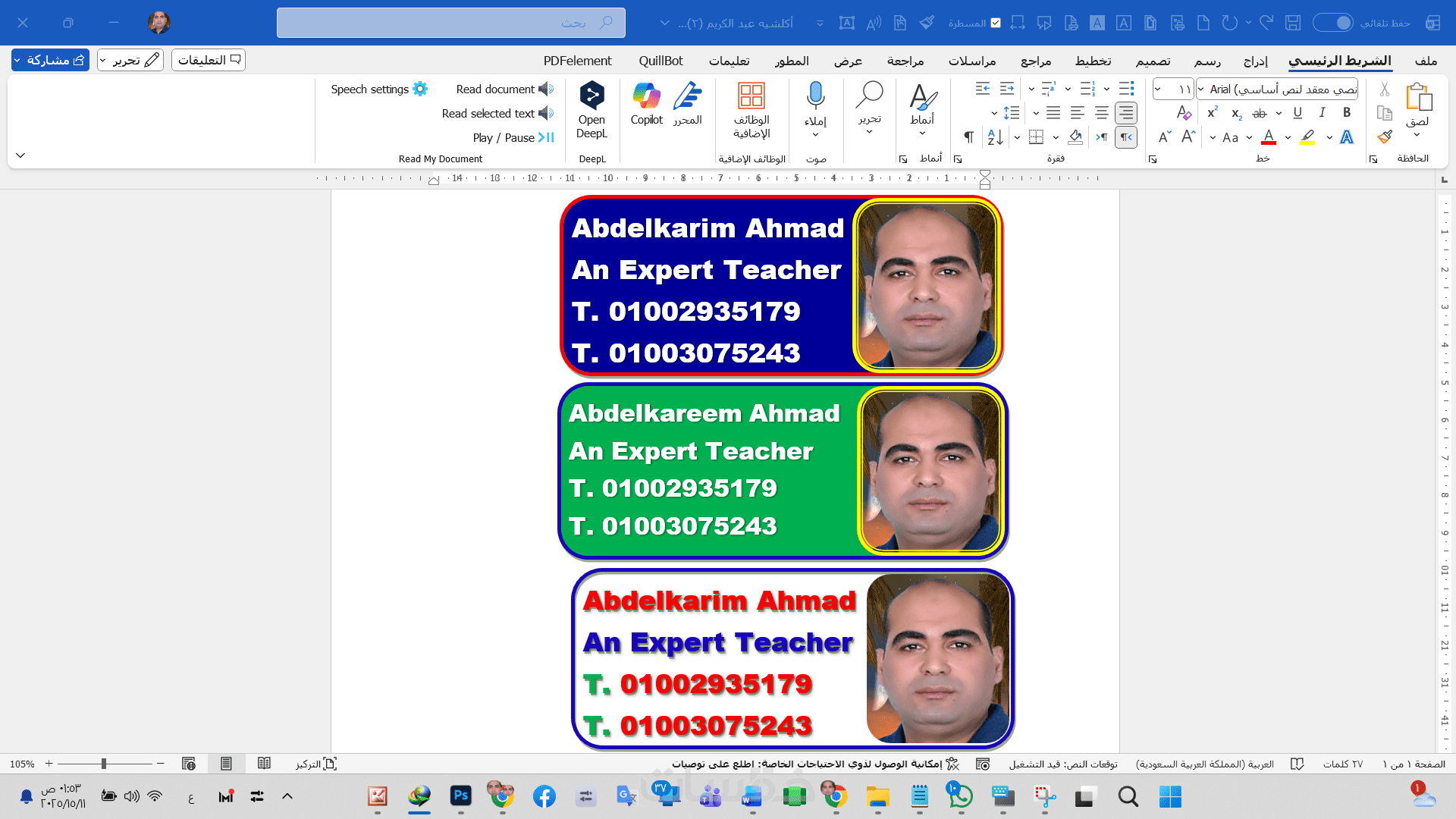 تعاملت مع أستاذ عبدالكريم في تنسيق ملف ضخم كان في البداية غير منسق وبه أخطاء كثيرة، والحمدلله النتيجة كانت ممتازة. قام بإعادة تنسيق الملف بالكامل باحترافية عالية، وترتيب المحتوى بشكل واضح وسلس، مع تصحيح الأخطاء وتحسين الشكل العام للملف. تعامله جدا جميل مع المشتري ويهتم بالوقت وبنفس جودة العمل كانت فوق توقعاتي إذ أن الملف كان يحتوي على الكثير من الأشكال والتناسيق المعقدة. كان متعاون، صبور، ويلتزم بالملاحظات، والتسليم تم في الوقت المتفق عليه. أنصح بالتعامل معه لأي شخص يحتاج تنسيق ملفات أو عمل منظم ودقيق.