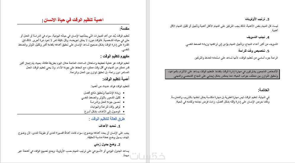 ترتيب الصفحات والفقرات بما يسهل القراءة والعرض