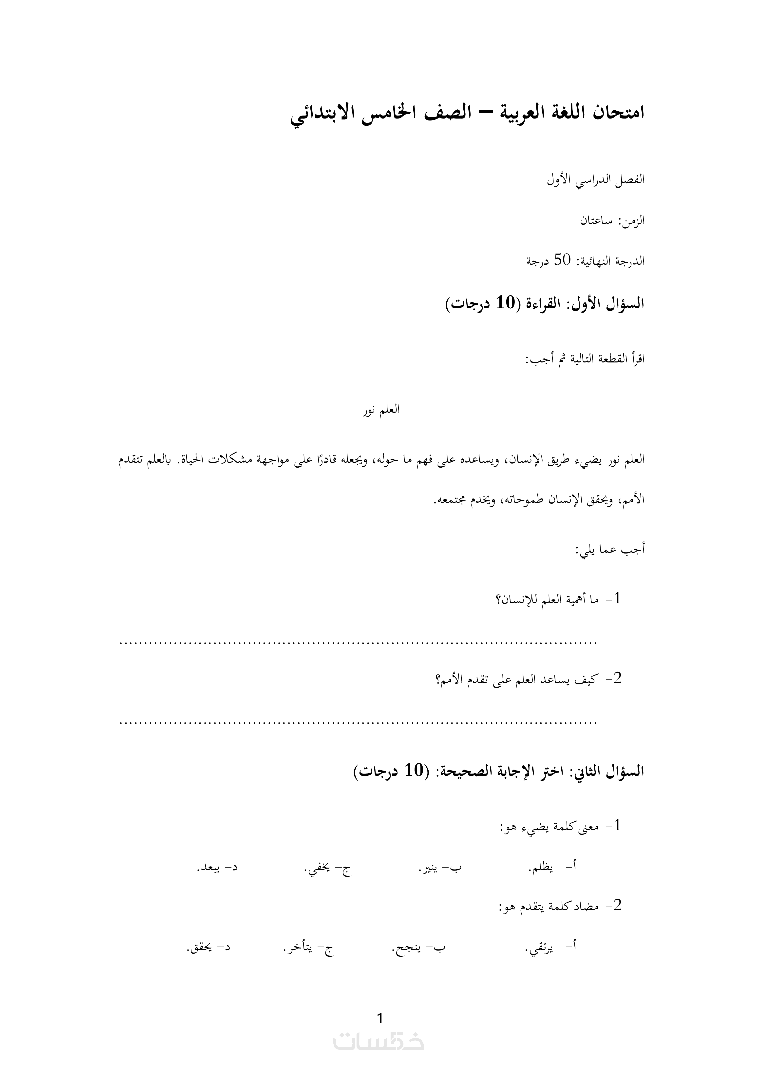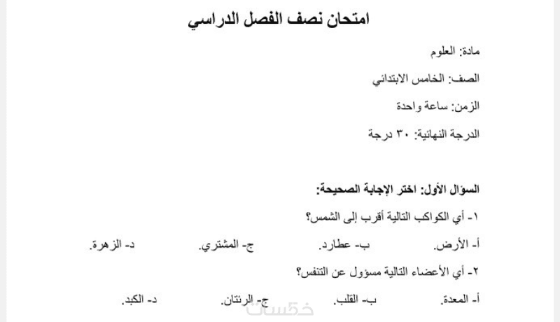 أقدّم لك خدمة تنسيق امتحانات وملفات تعليمية بشكل منظم وواضح، مناسب للطباعة أو الإرسال PDF.