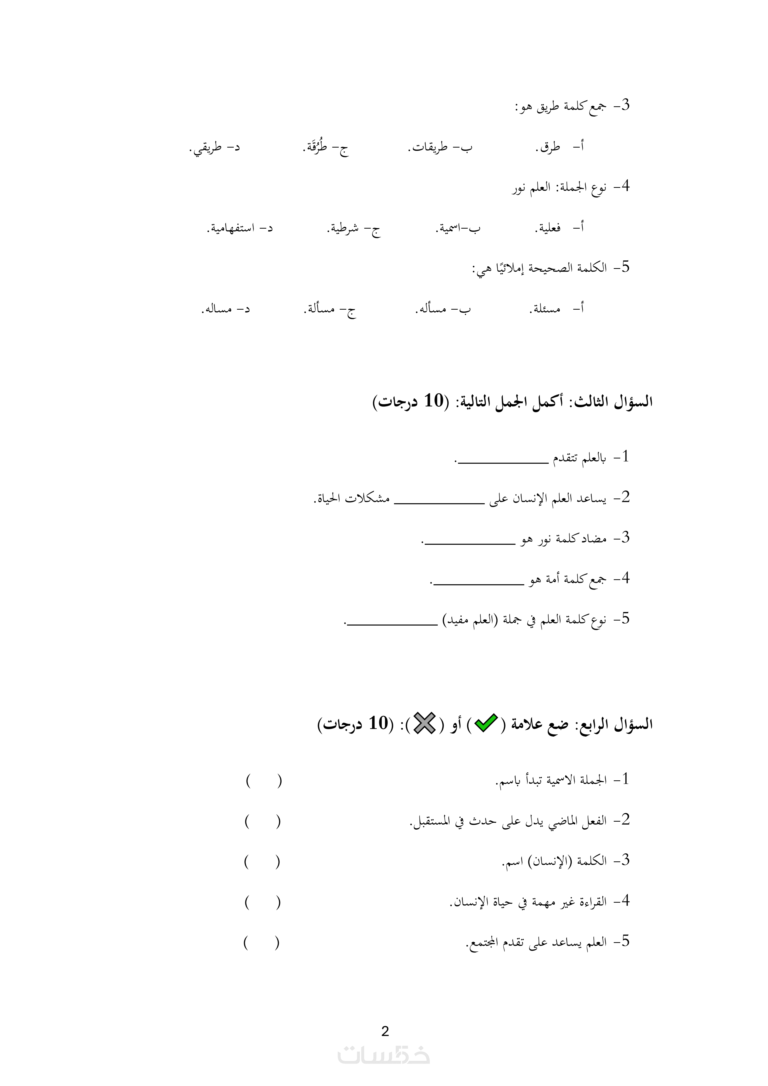 ترتيب اختيارات (صح وغلط – اختر – أكمل – مقالي)