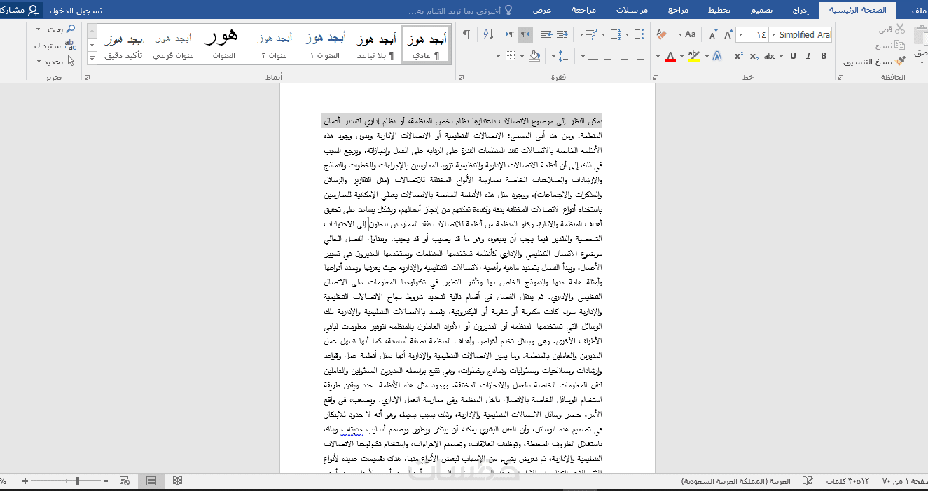 تنظيم العناوين الرئيسية والفرعية باستخدام الـ Styles لسهولة التنقل داخل الملف.