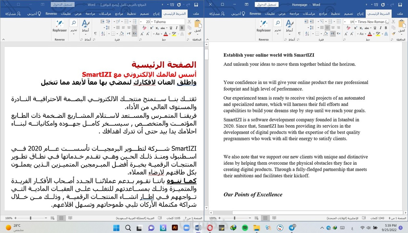 التدقيق اللغوي والإملائي للغتين العربية والإنجليزية .