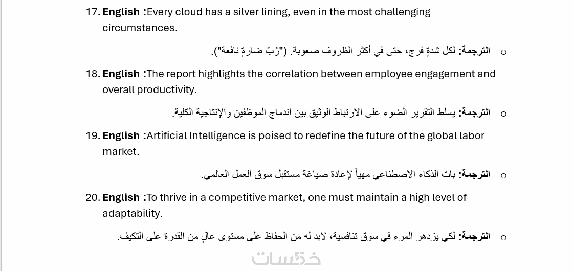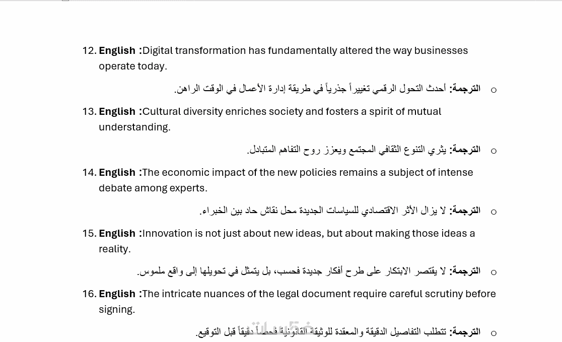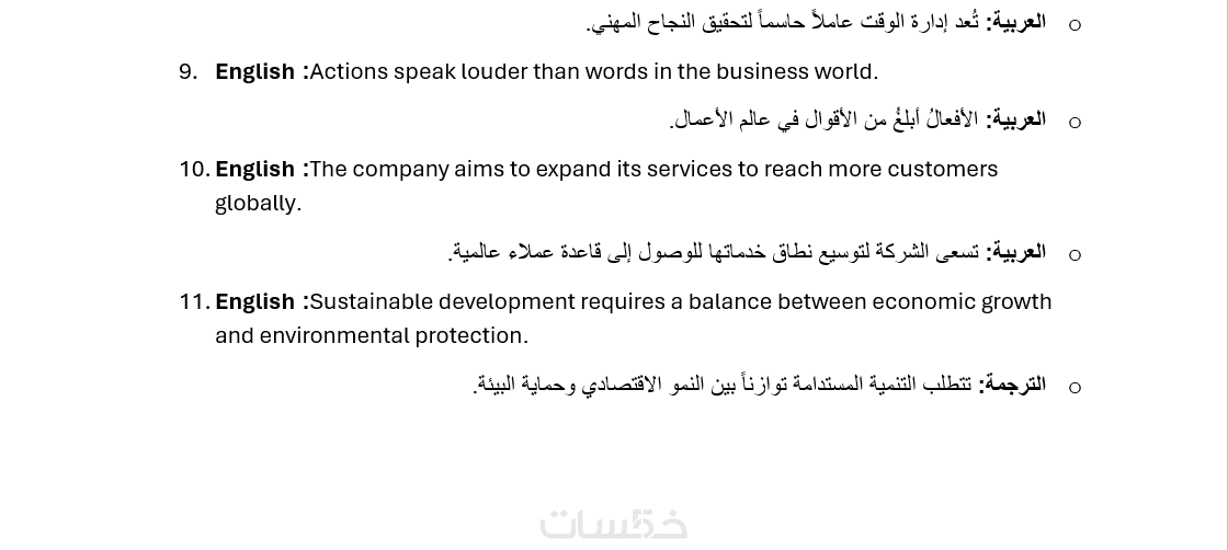 - ترجمة 600 كلمة يدويًا باحترافية وبصياغة قوية مع بنك كامل من المصطلحات والكلمات المختلفة من اللغة العربية الي الإنجليزية من مختلف المصادر سواء من مقالات ، اوراق علمية ، محادثات ، قصص....الخ