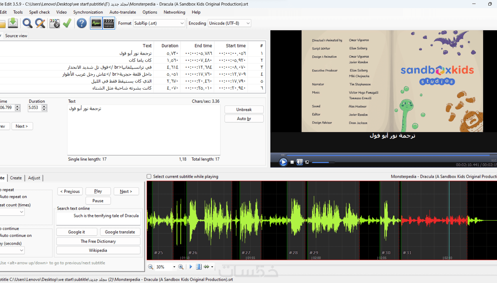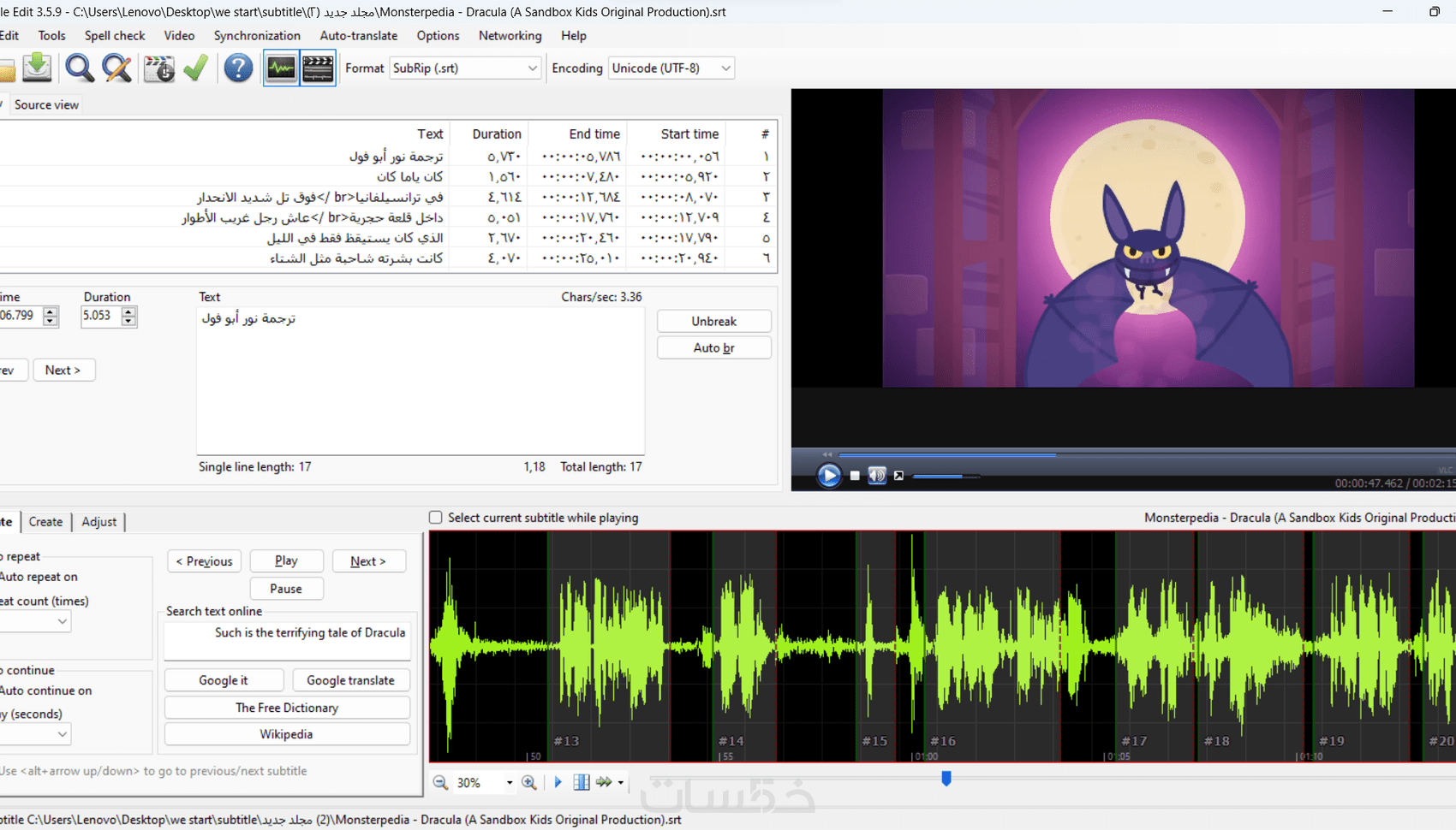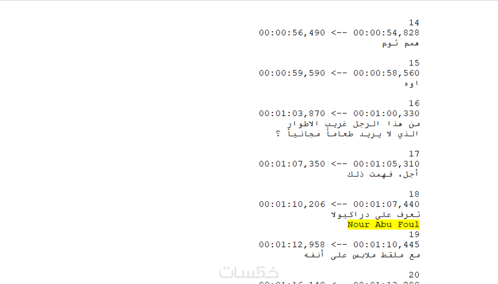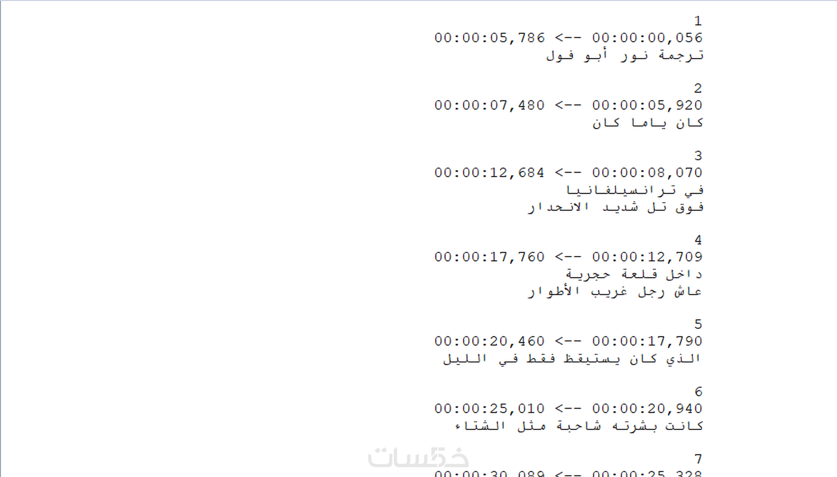 4- تعديل ملف SRT بما يناسب التقسيم الزمني للفيديو