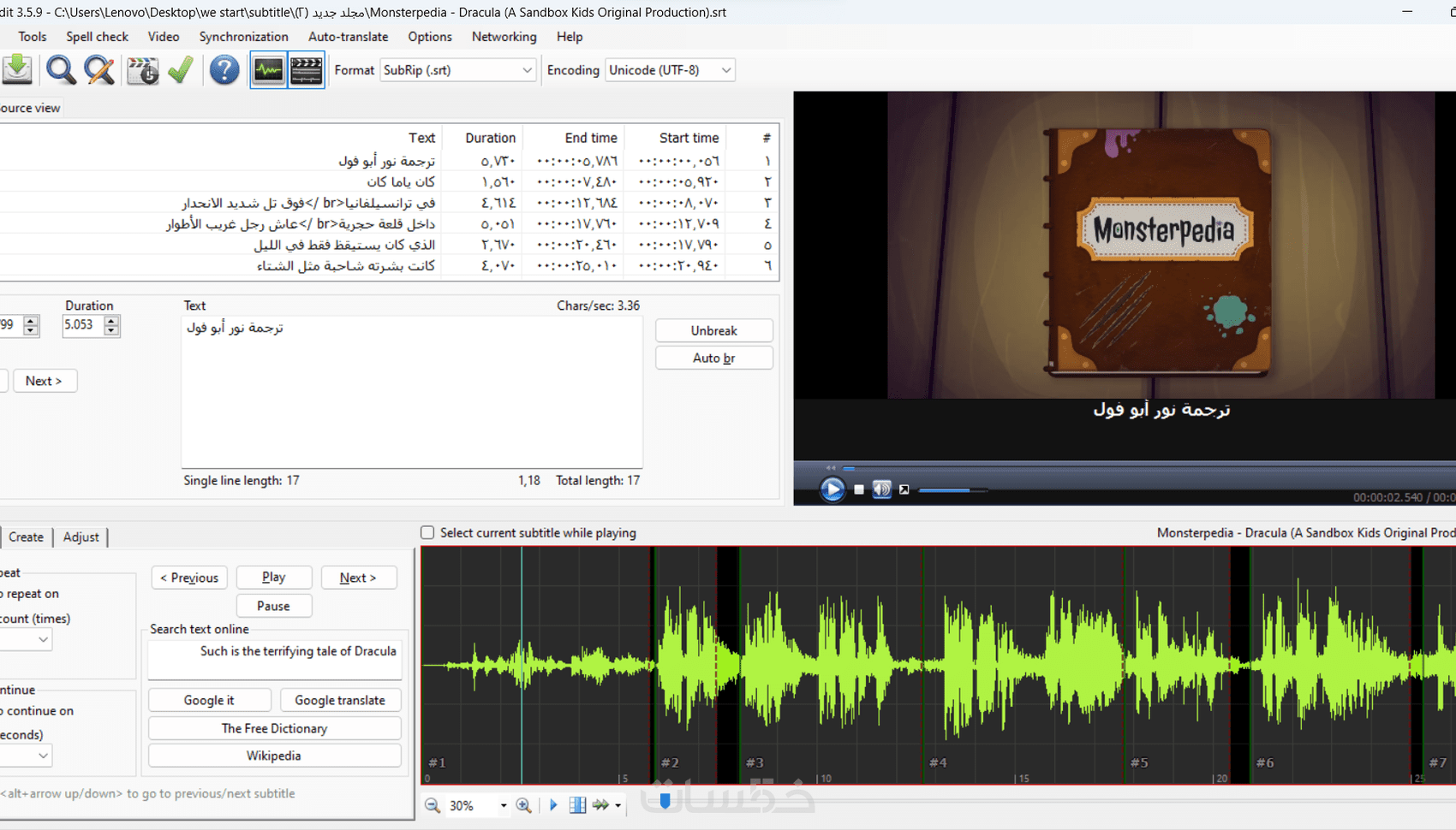 3- وضع ملف SRT على تطبيق Subtitle Edit