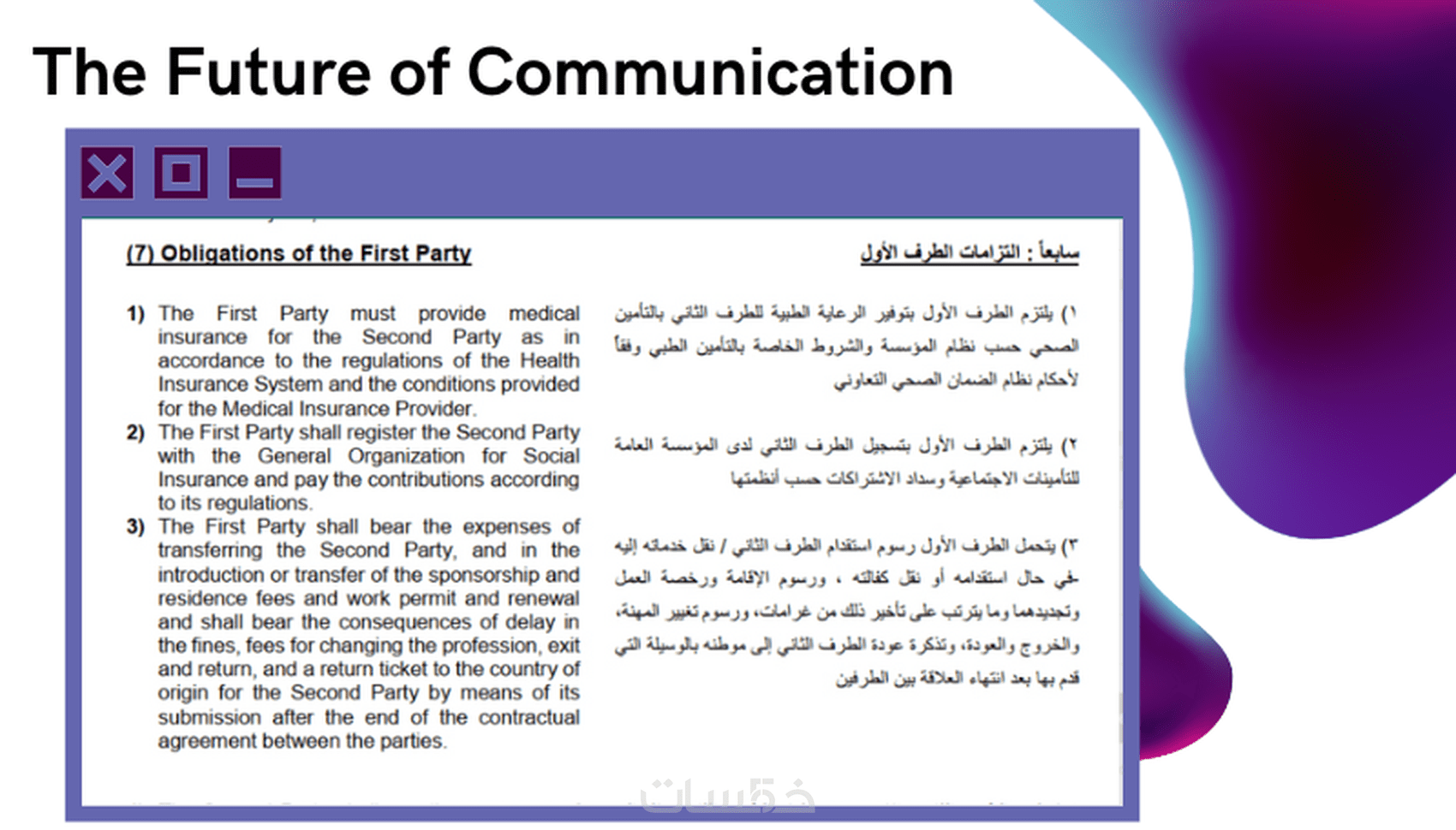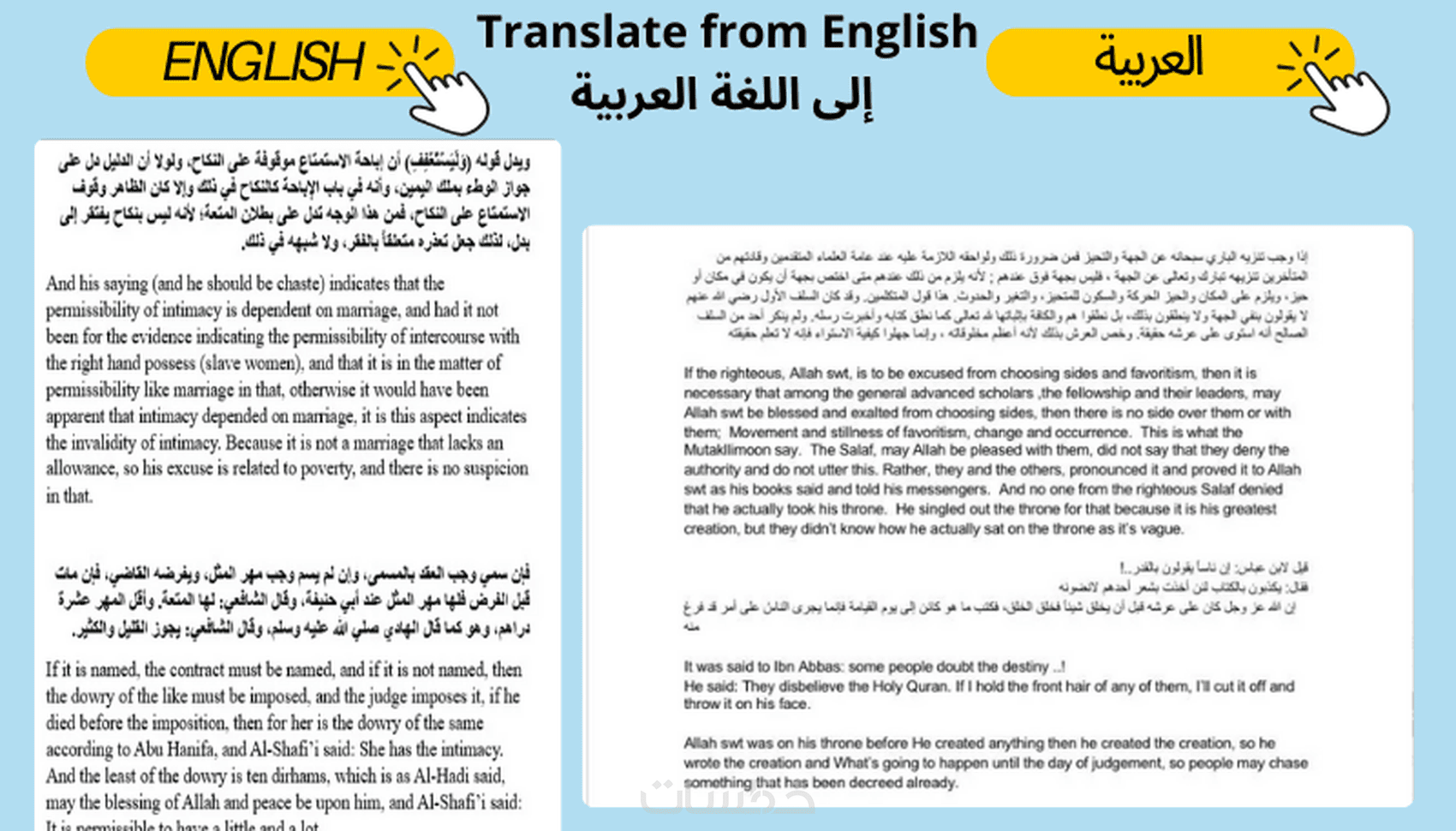 - أقوم بترجمة نصوص معقدة وفي مجالات مختلفة مثل الطبية، القانونية، التقنية، والأكاديمية.