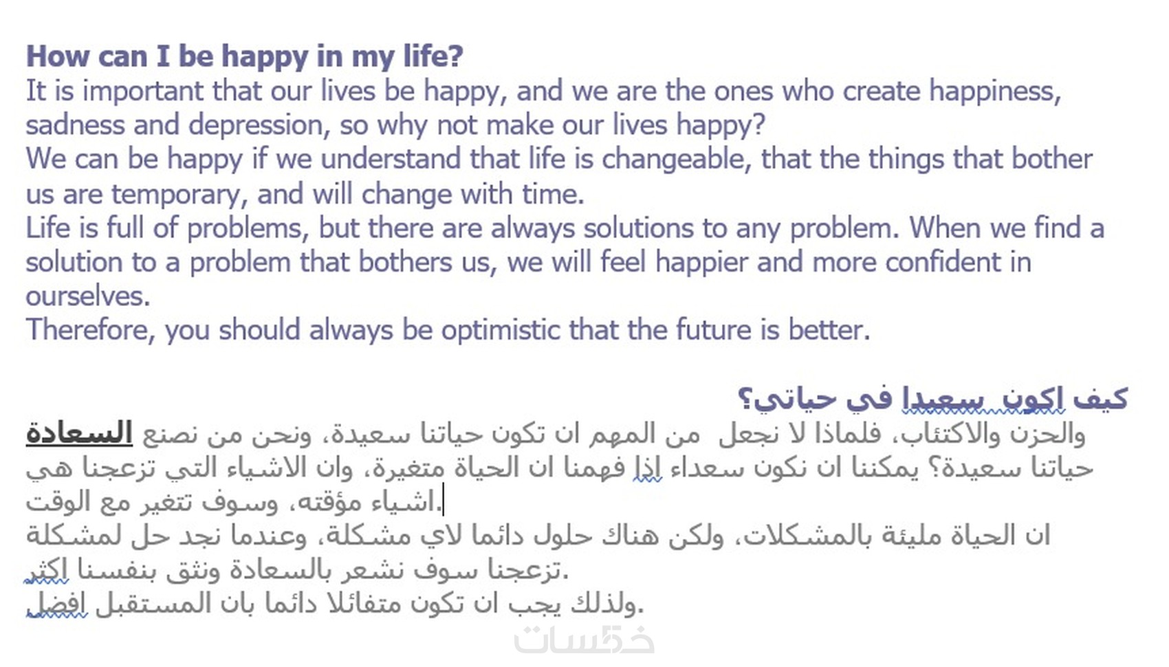 - ترجمة +500 كلمة في يوم واحد من العربية إلى الإنجليزية.
