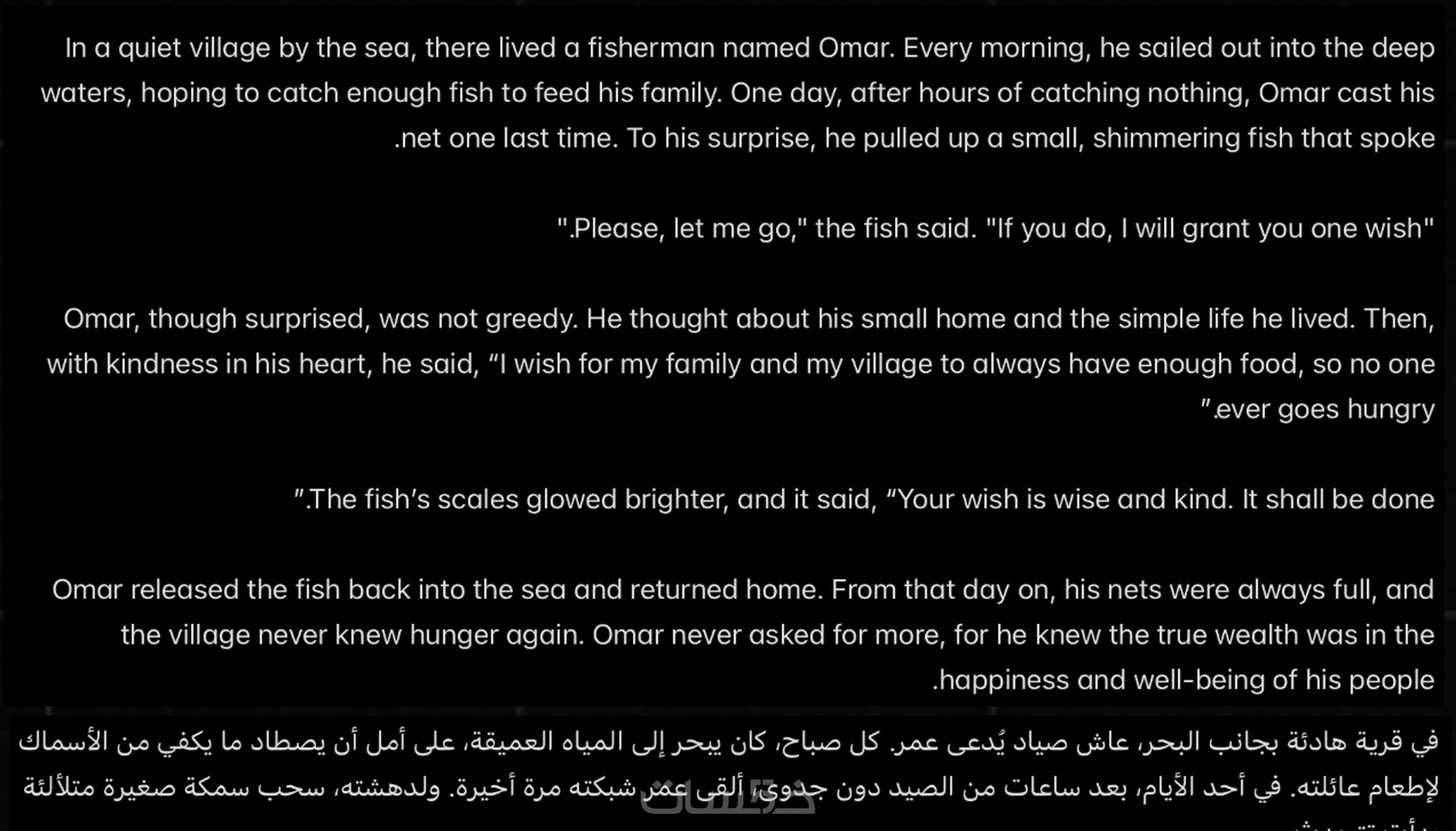 يوجد لدينا ترجمة احترافية وايضا ترجمة مقالات والقصص باللغتين الانجليزية والعربية وتحويل النص الانجليزي الى العربي او العربي الى الانجليزي، دقة وجودة وانضباط لغوي متوفرة الى اللغتين العربية والانجليزية، ان كنت مهتماً بخدماتنا فلا تتردد وقم بالتواصل معنا فوراً!!