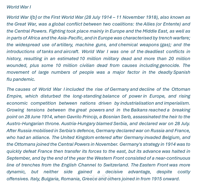 --» يتم ترجمة معنى النص (لا ترجمة حرفية) وتتم صياغته بأسلوب عربي واضح ودقيق وخالي من الأخطاء اللغوية 500 كلمة