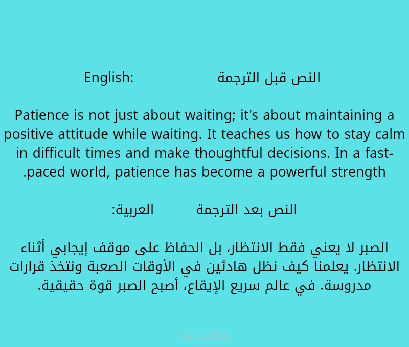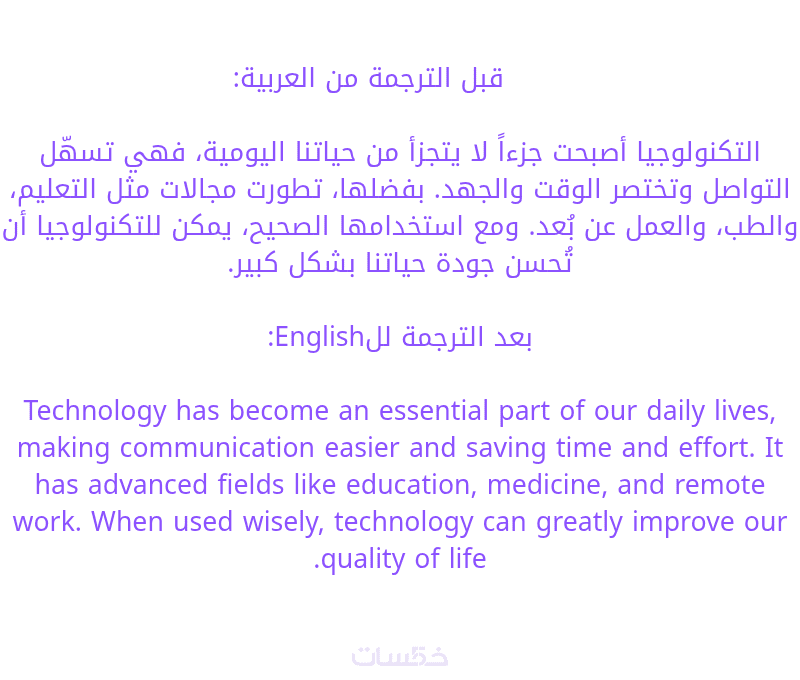 الوصف: يتم تنسيق النص المترجم ليظهر بشكل منظم وجاهز للاستخدا