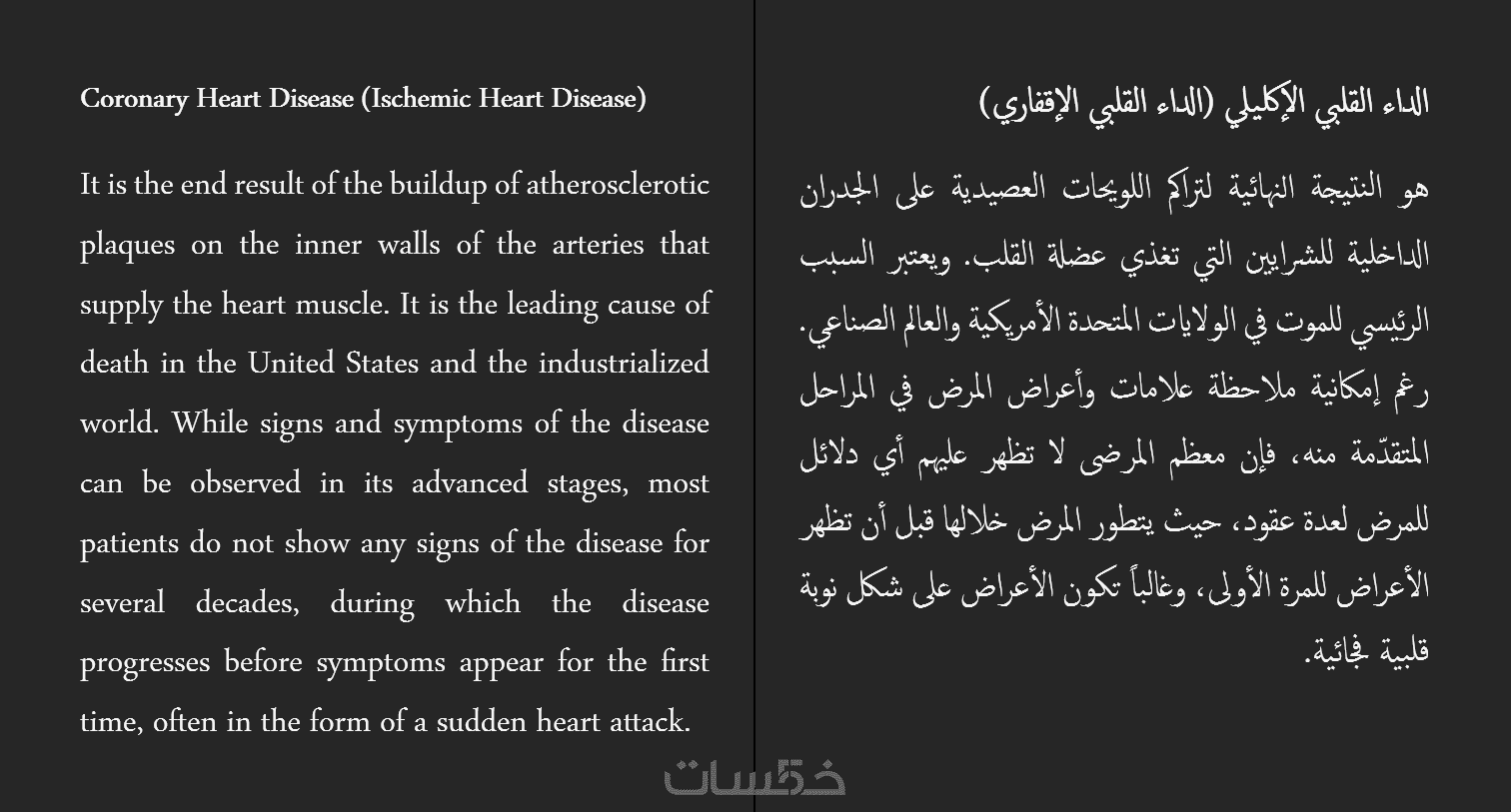 أنا طبيب مقيم متمرس في اللغة الأكاديمية الطبية العربية والإنكليزية على حد سواء، مؤسس ومدير فريق الترجمة الأكاديمية (ATT). أقدم بشكل أساسي الترجمة والتدقيق اللغوي والنحوي والعلمي من وإلى اللغتين العربية والإنكليزية لجميع النصوص الطبية من مراجع وأبحاث علمية واستبيانات ومواقع ومقاطع فيديو وغيرها، بطريقة أكاديمية تتوافق مع المعجم الطبي الموحد (UMD) للغة العربية ومع توصيات الجمعيات الأمريكية أو البريطانية للغة الإنكليزية، وخبرتي التي تتجاوز الـ 6 سنين في مجال الترجمة الطبية تعود لدراستي لكامل البكالوريوس في جامعة تدرس الطب باللغة العربية بشكل أساسي، أما خبرتي العالية في اللغة الإنكليزية فالأدلة عليها دراستي العليا في الدول الأجنبية وإنجازاتي اللغوية المتنوعة، حيث قمت بترجمة 5 أبحاث علمية أصيلة و400 صفحة من المراجع الطبية السريرية منها والأساسية، وشاركت في عدة مسابقات وندوات تتعلق بالترجمة.